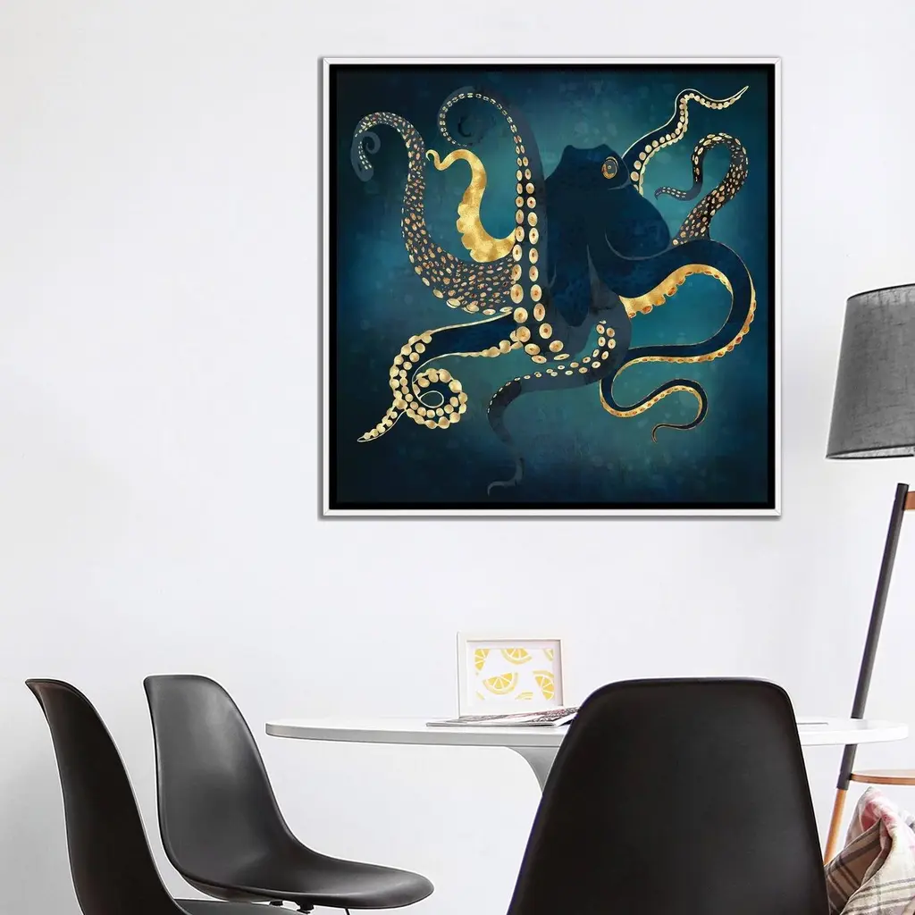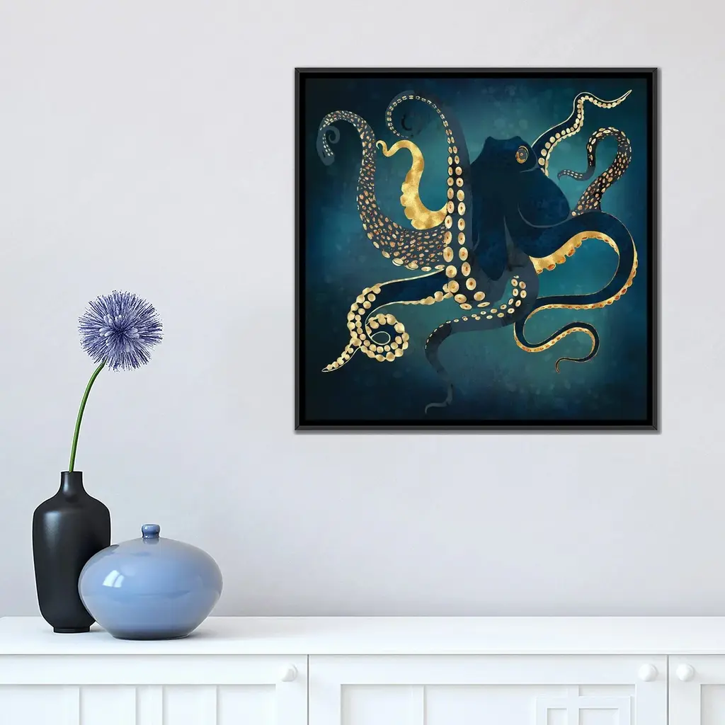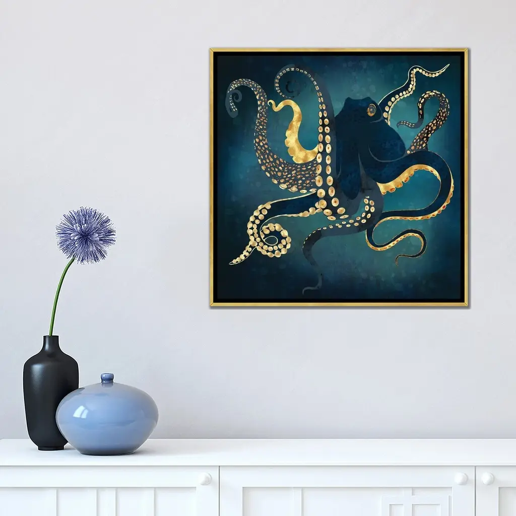 Icanvas "Metallic Octopus Iv" By Spacefrog Designs Framed Canvas Print - Gold - 18x18