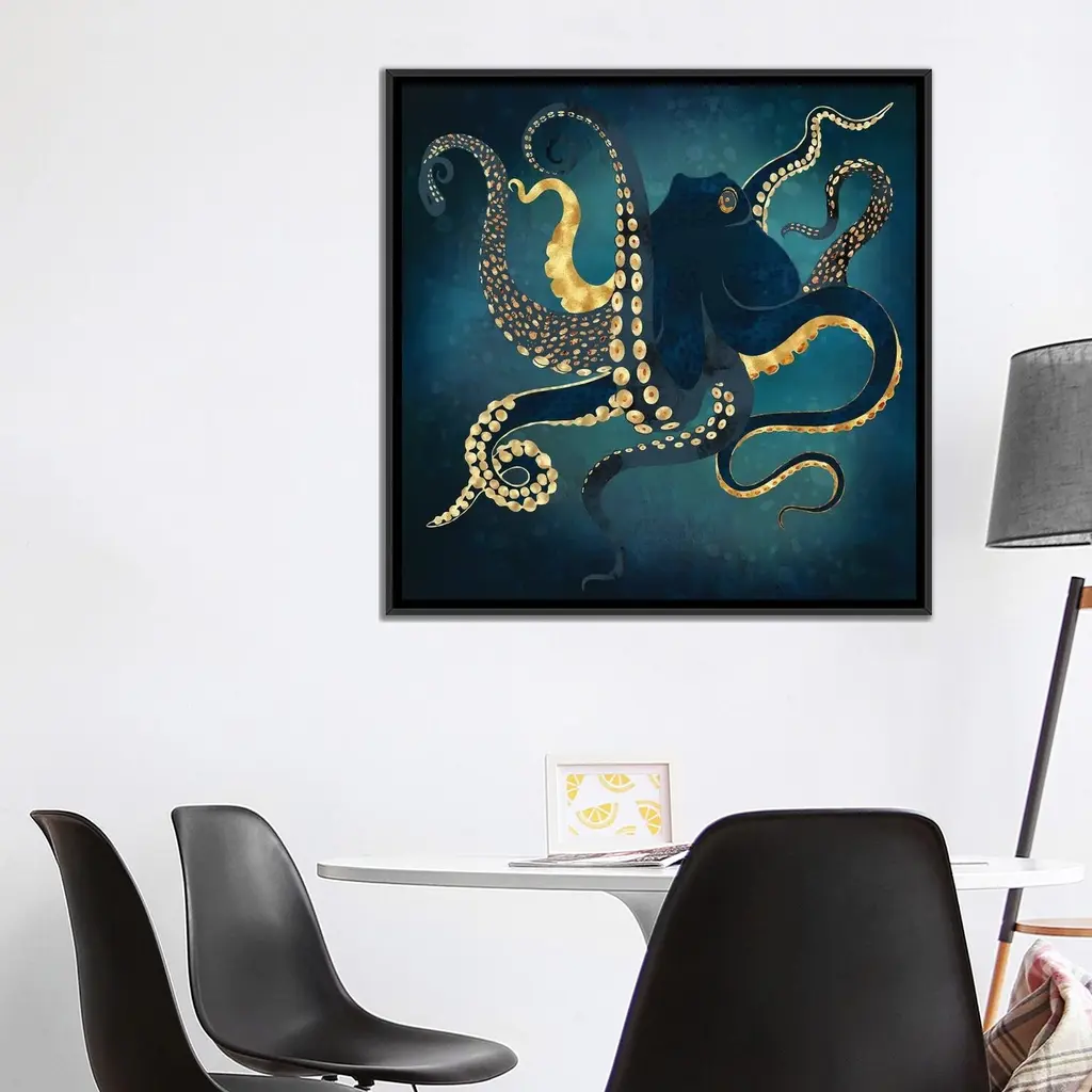 Icanvas "Metallic Octopus Iv" By Spacefrog Designs Framed Canvas Print - Gold - 26x26