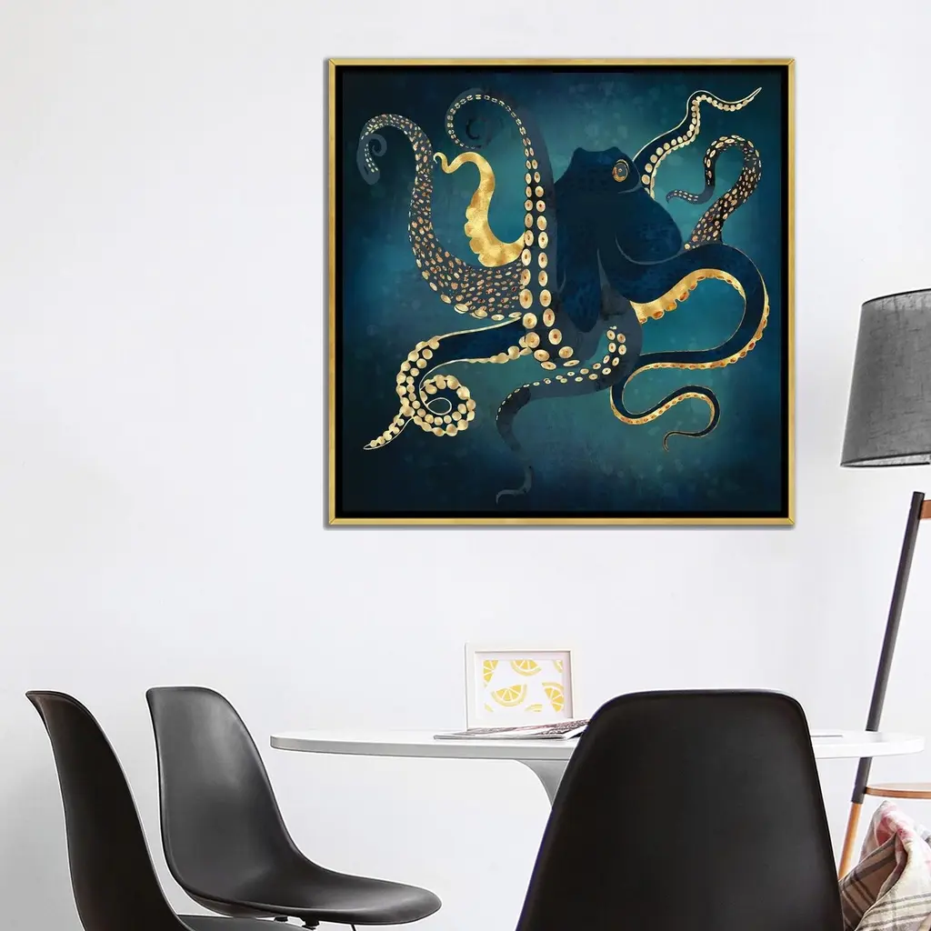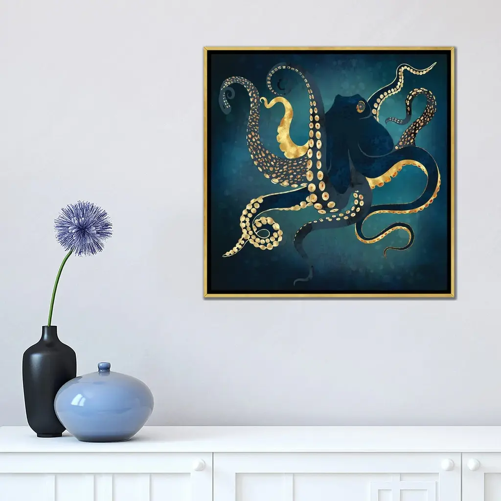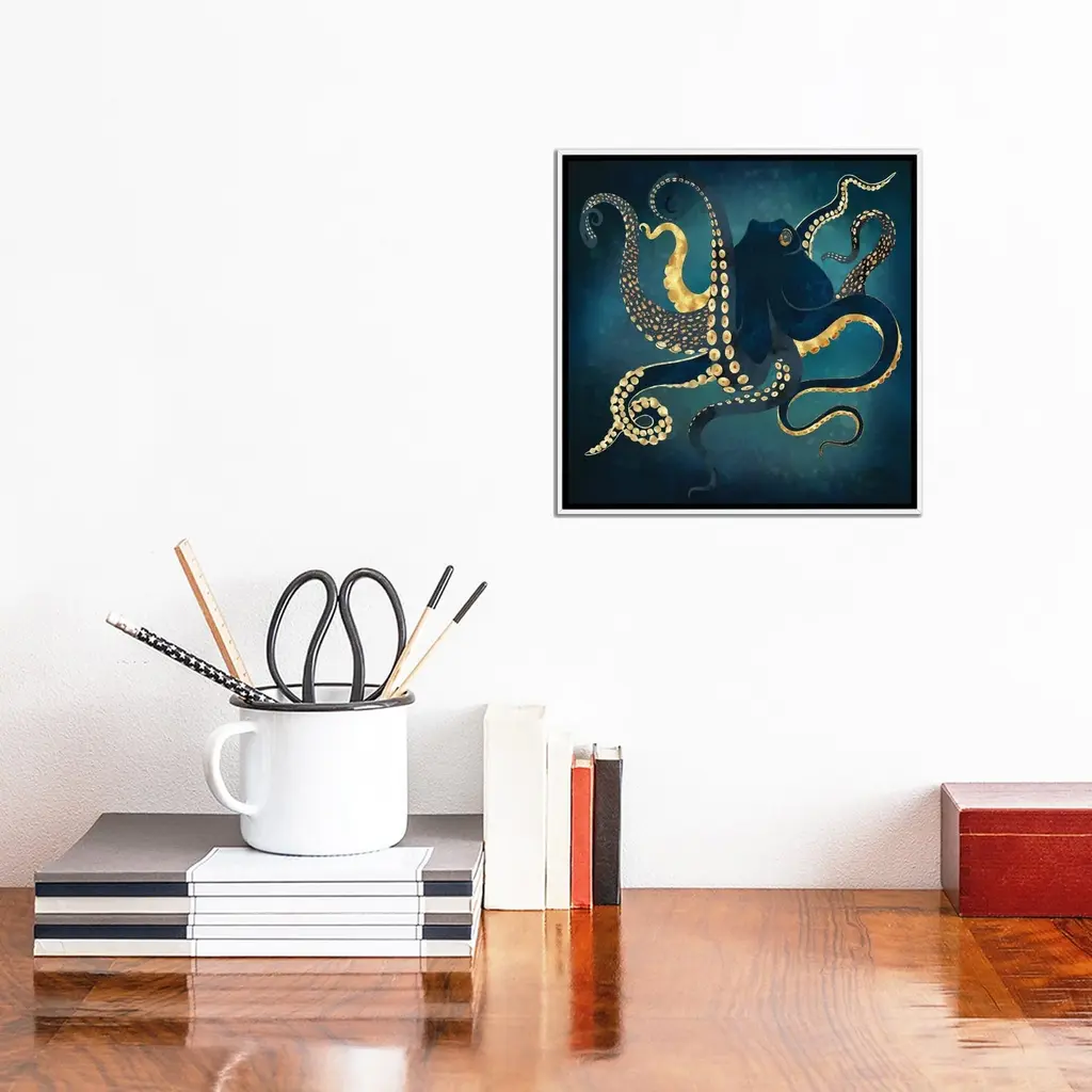 Icanvas "Metallic Octopus Iv" By Spacefrog Designs Framed Canvas Print - White - 12x12