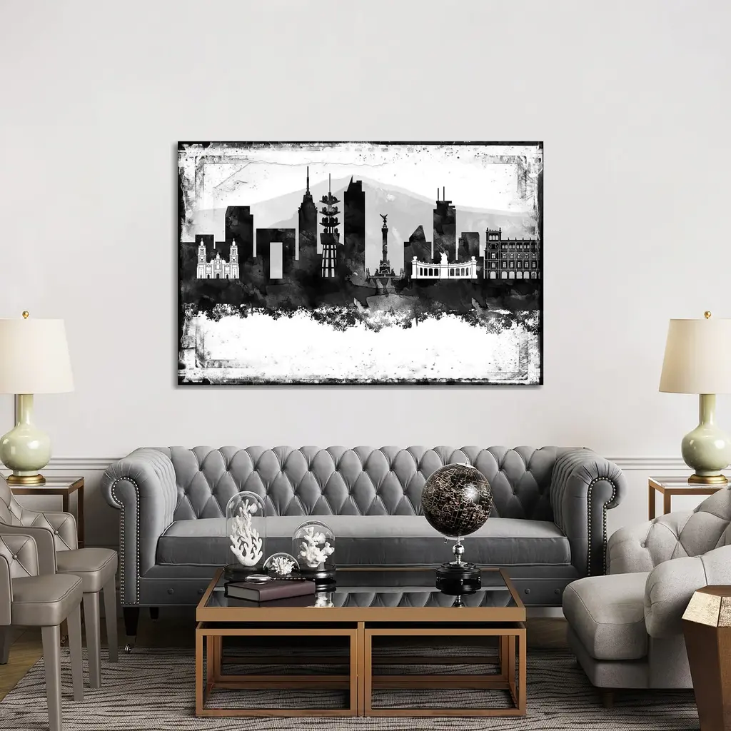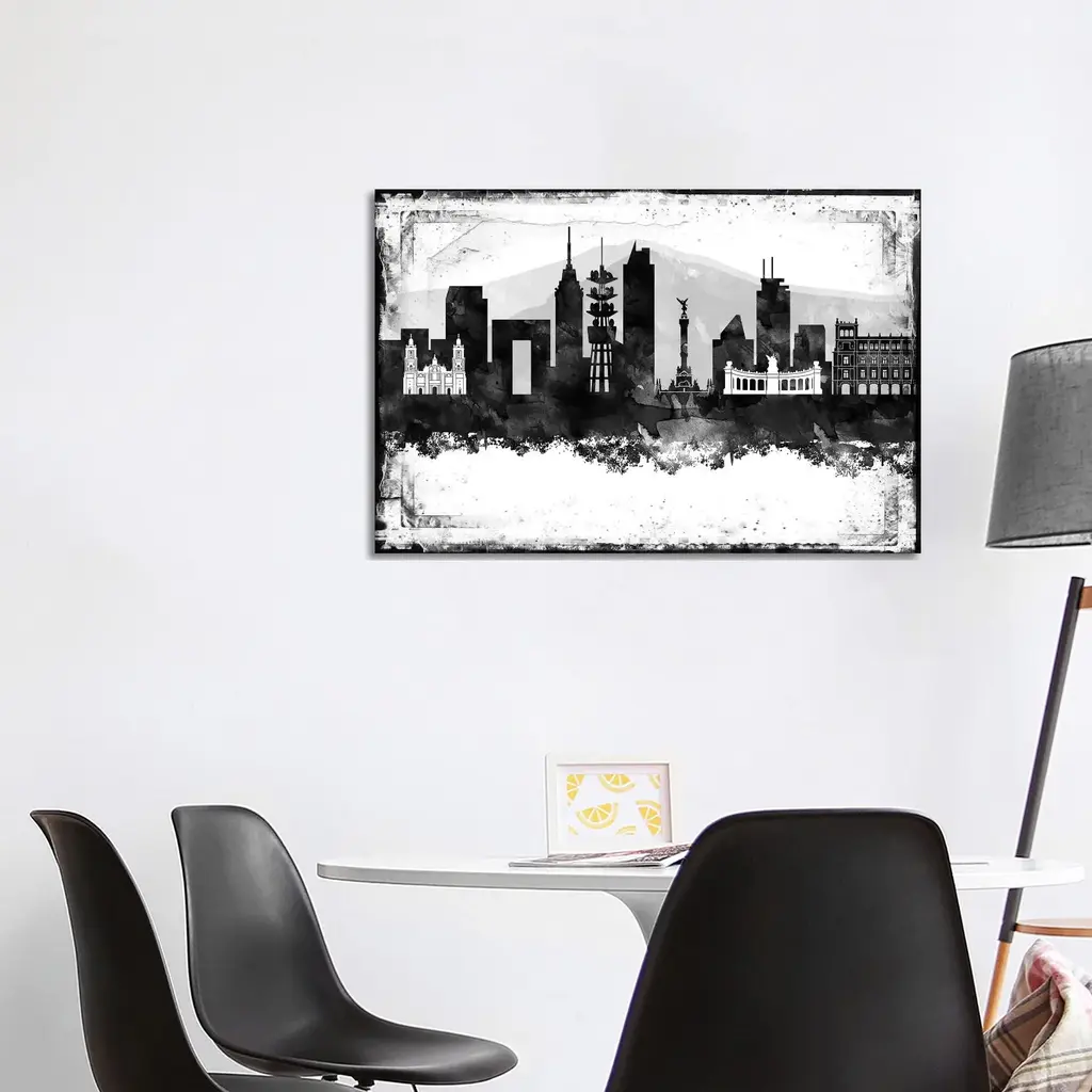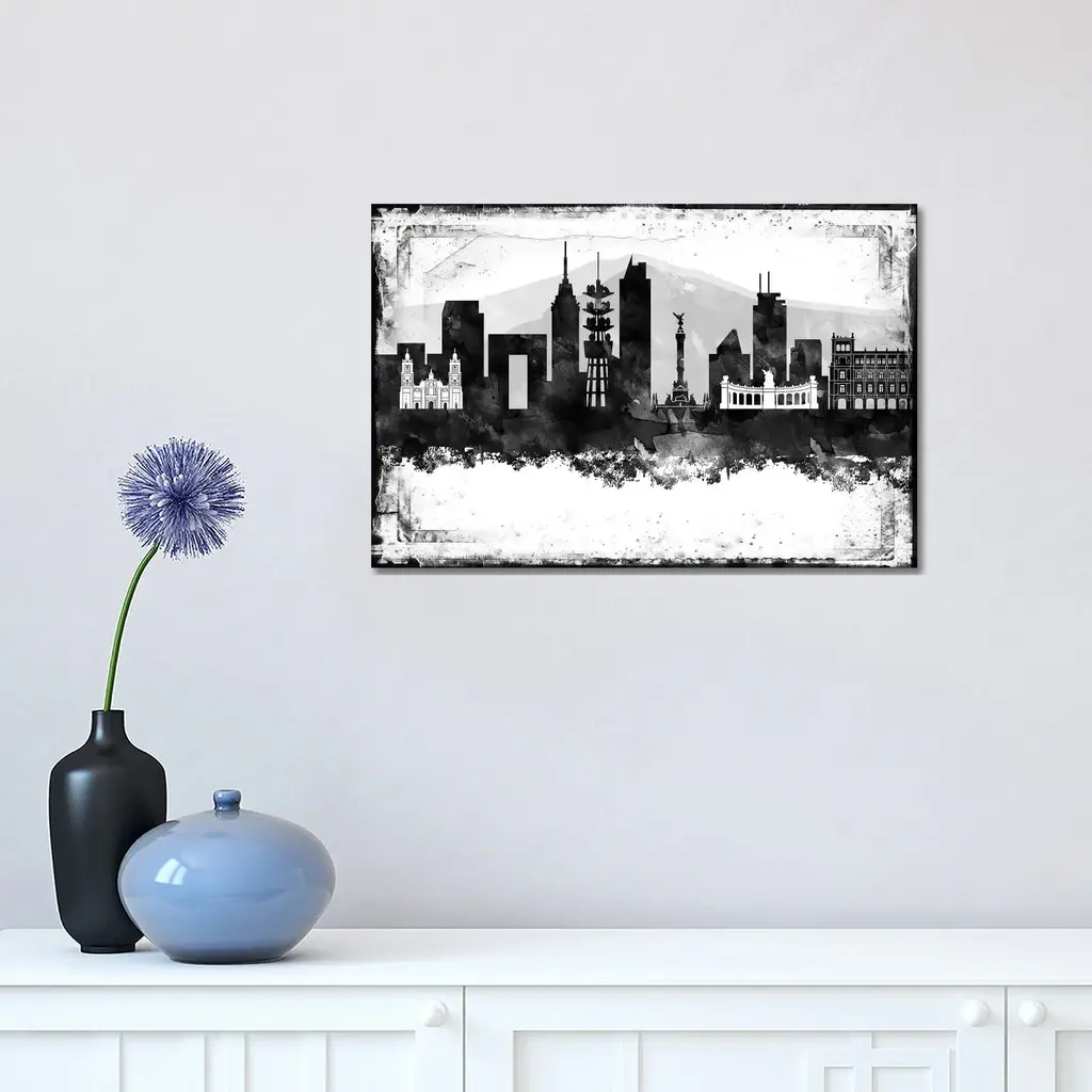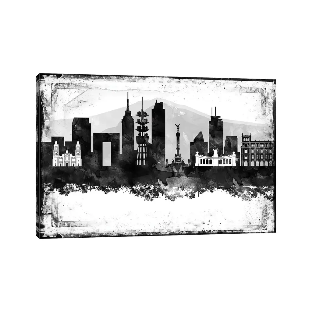 Icanvas "Mexico City Black And White Framed Skylines" By Walldecoraddict Canvas Print - 18x26x1.5