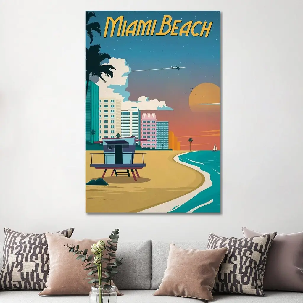 Icanvas "Miami Beach" By Ideastorm Studios Canvas Print - 40x26x1.5