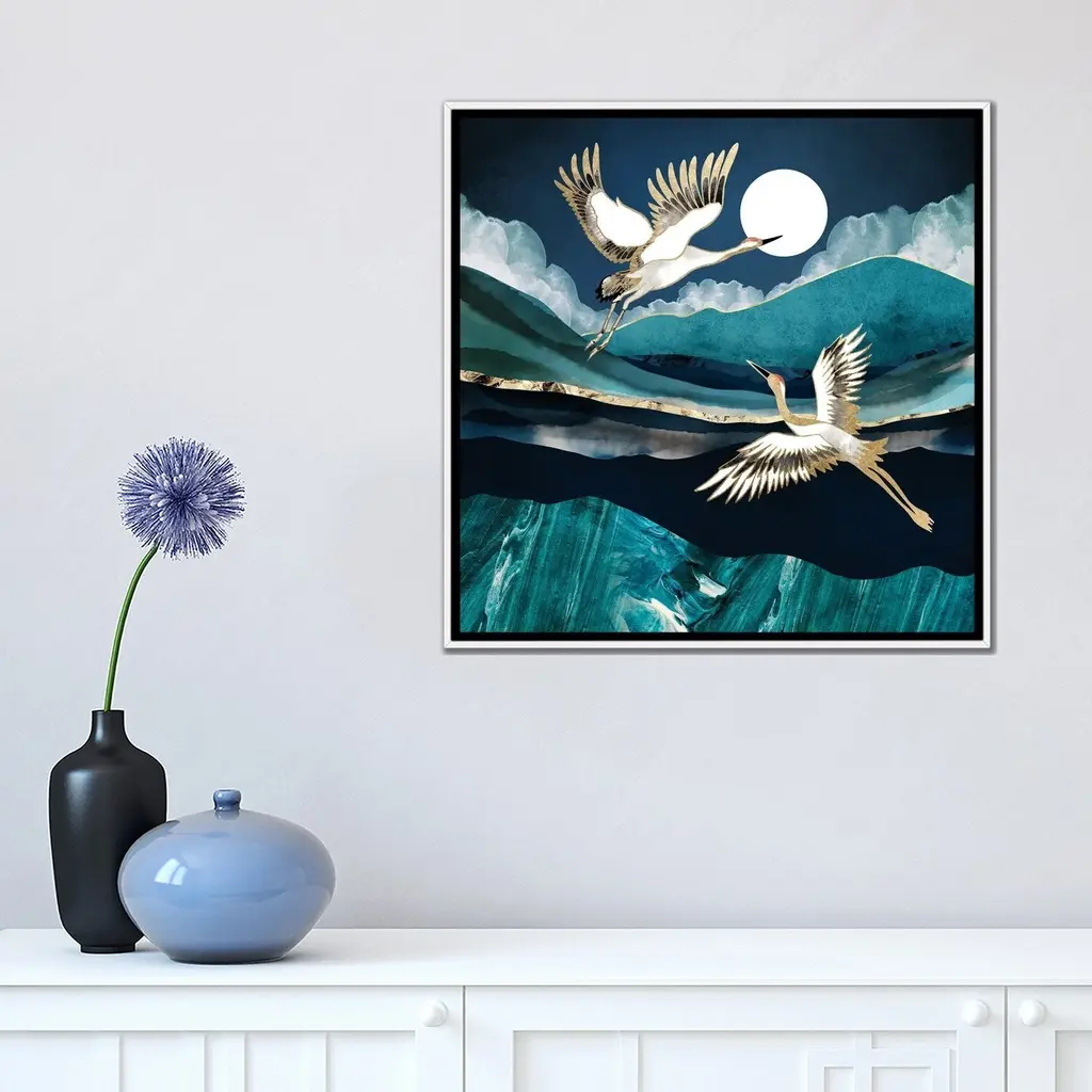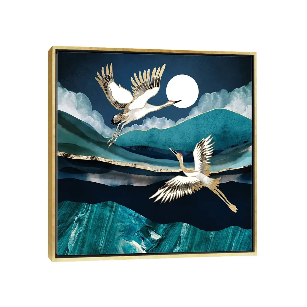 Icanvas "Midnight Cranes" By Spacefrog Designs Framed Canvas Print - Gold - 37x37
