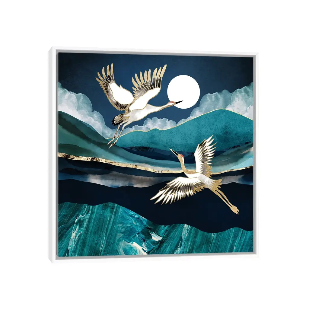 Icanvas "Midnight Cranes" By Spacefrog Designs Framed Canvas Print - White - 12x12
