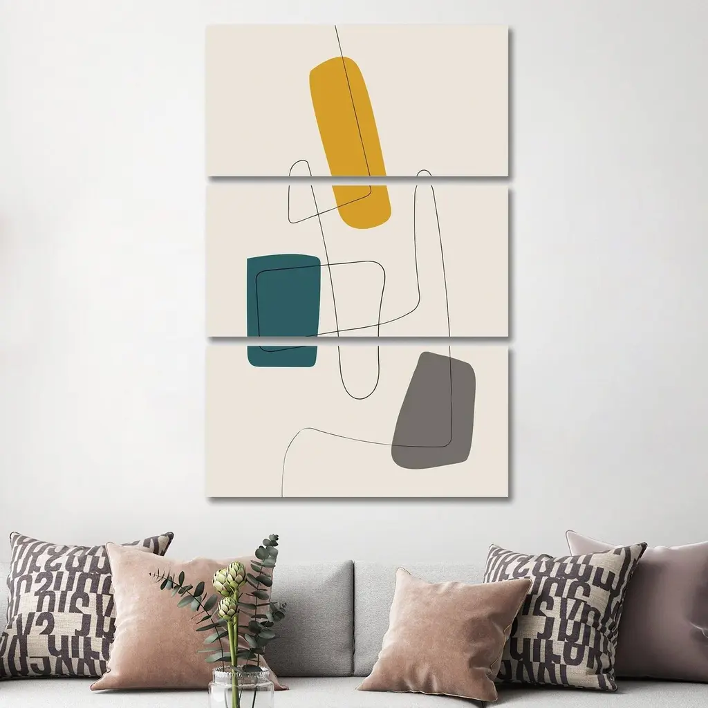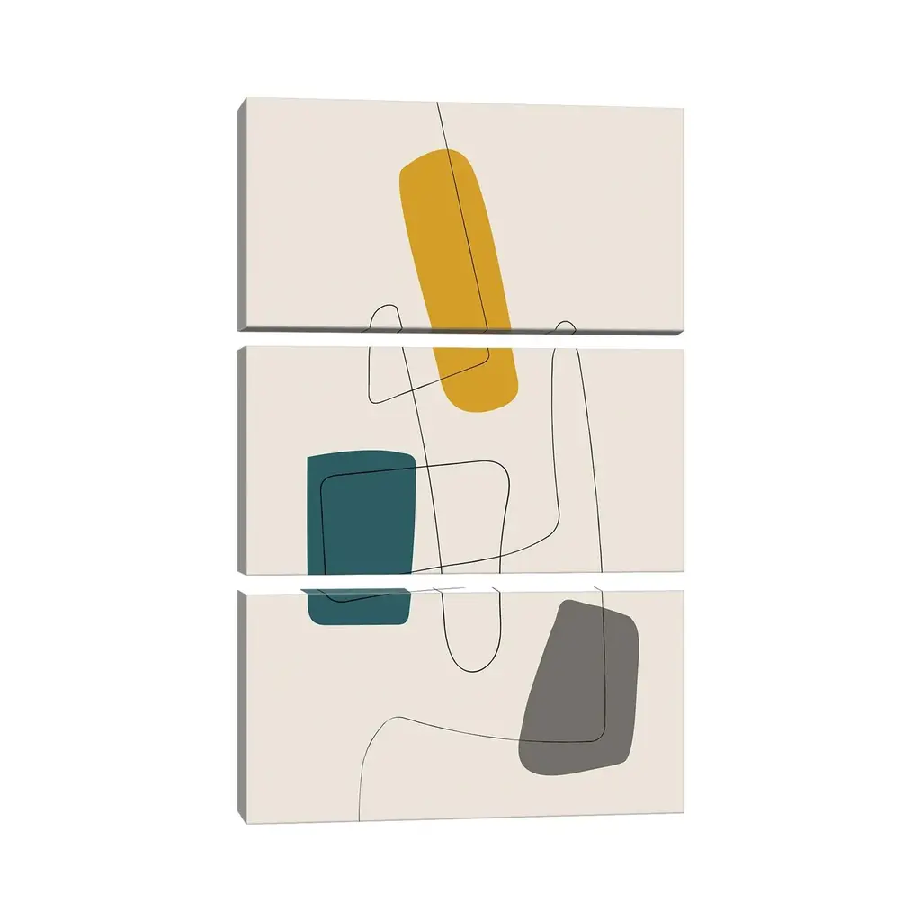 Icanvas "Minimalist Line Mustard Teal Gray" By Emcdesignlab 3-Piece Wall Art Set - 60x40x1.5