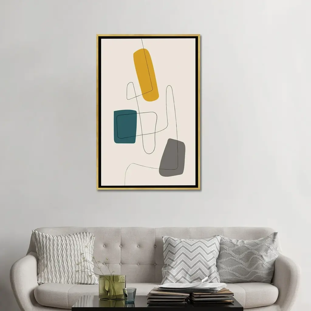 Icanvas "Minimalist Line Mustard Teal Gray" By Emcdesignlab Framed Canvas Print - Black - 48x32