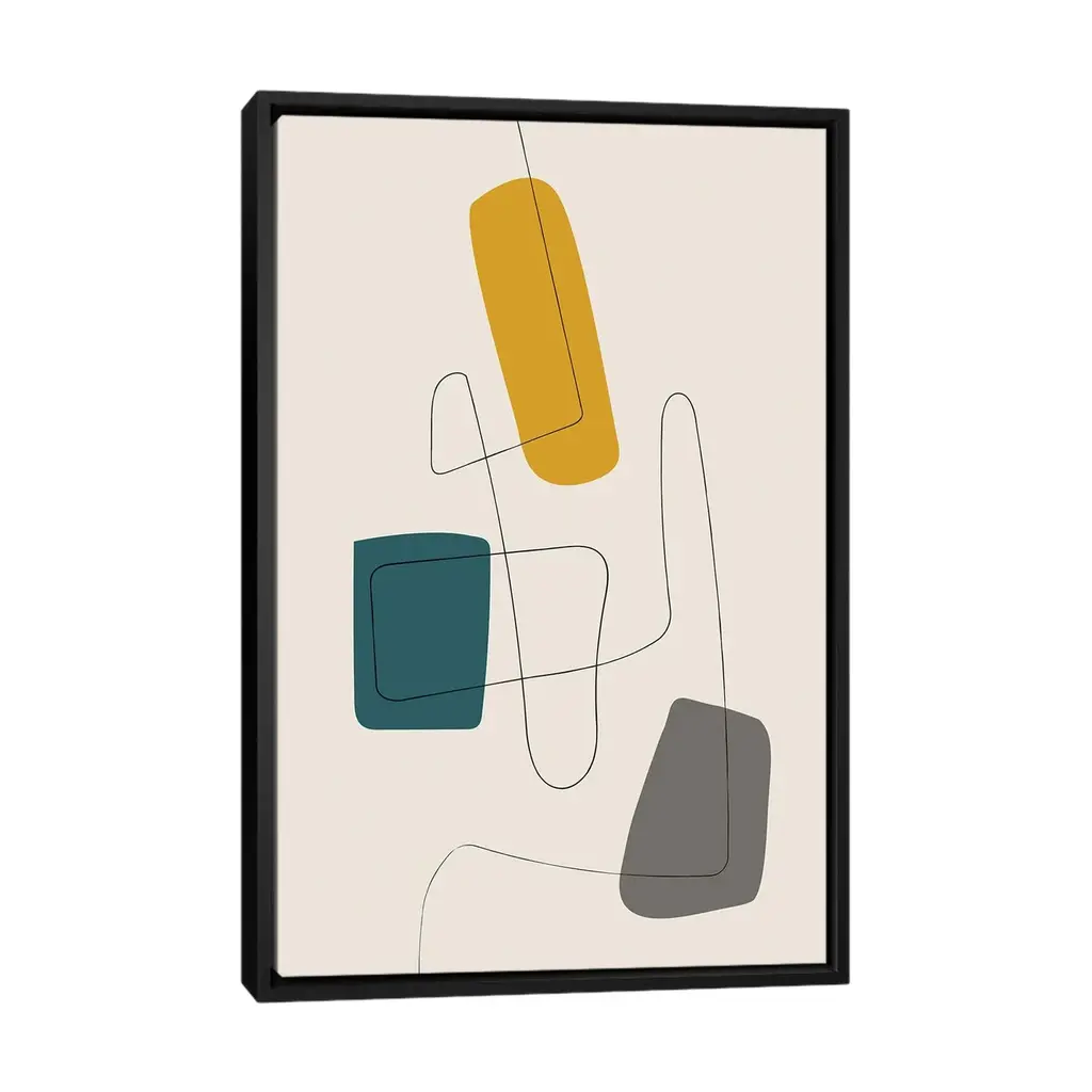 Icanvas "Minimalist Line Mustard Teal Gray" By Emcdesignlab Framed Canvas Print - White - 48x32