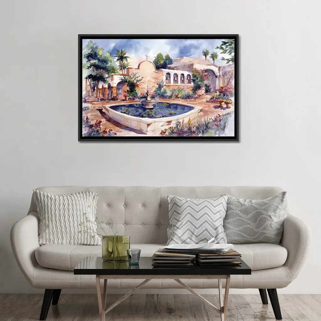 Icanvas "Mission San Juan Capistrano" By Bill Drysdale Framed Canvas Print - Black - 32x48