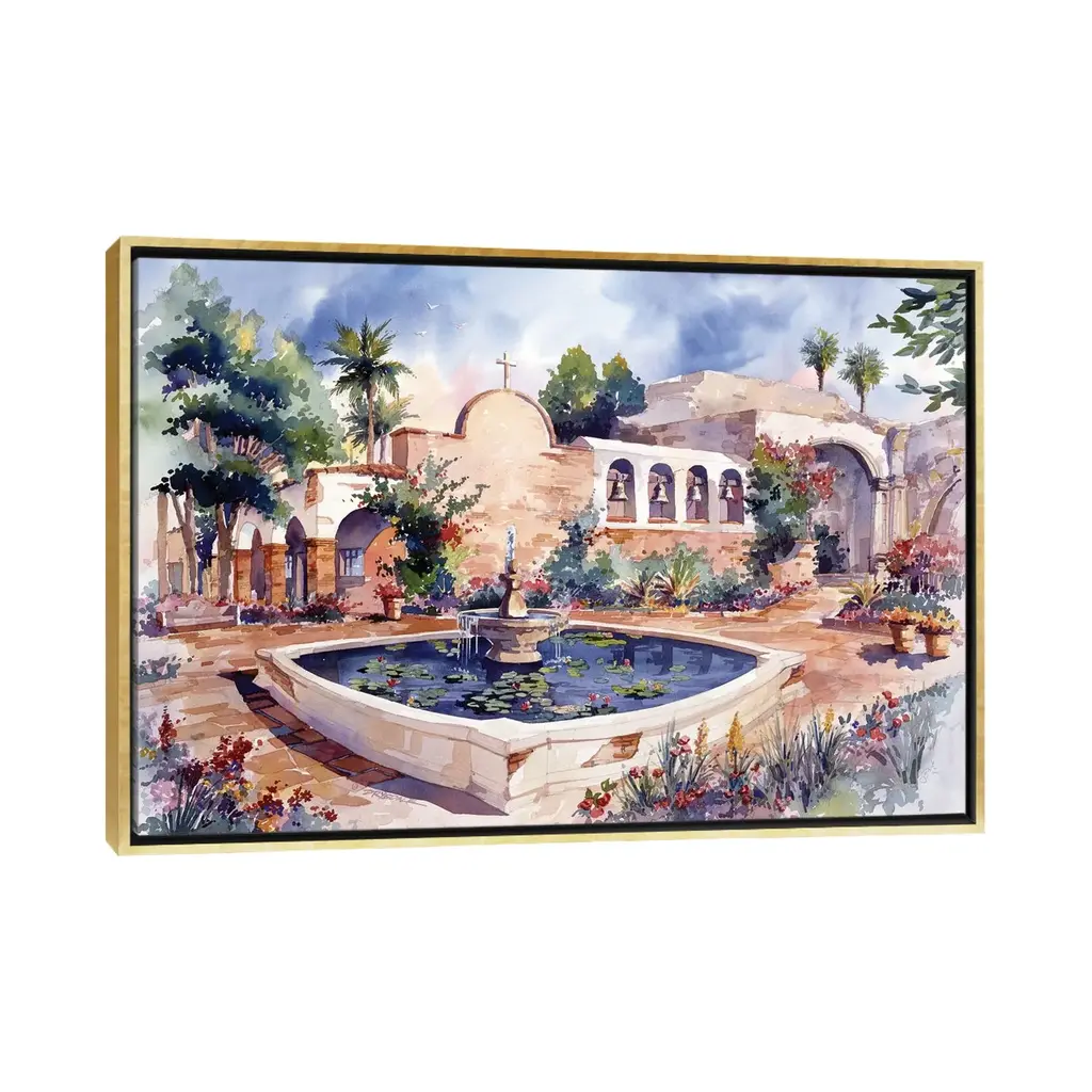 Icanvas "Mission San Juan Capistrano" By Bill Drysdale Framed Canvas Print - White - 18x26