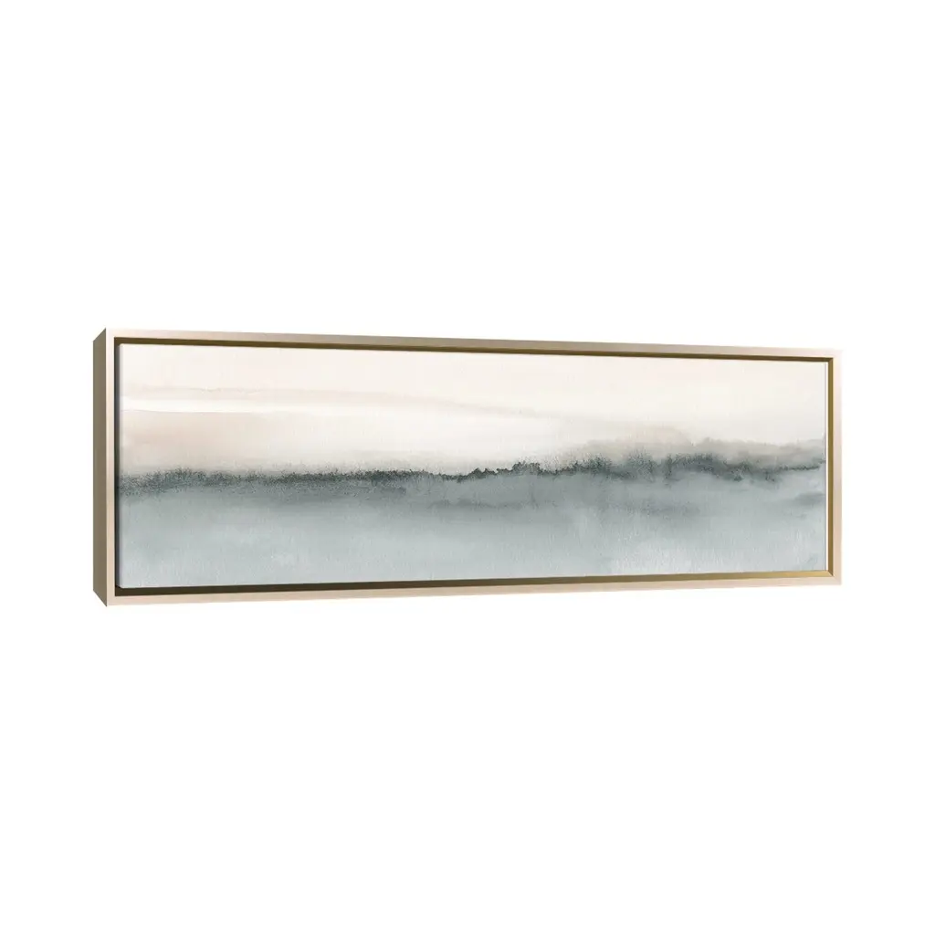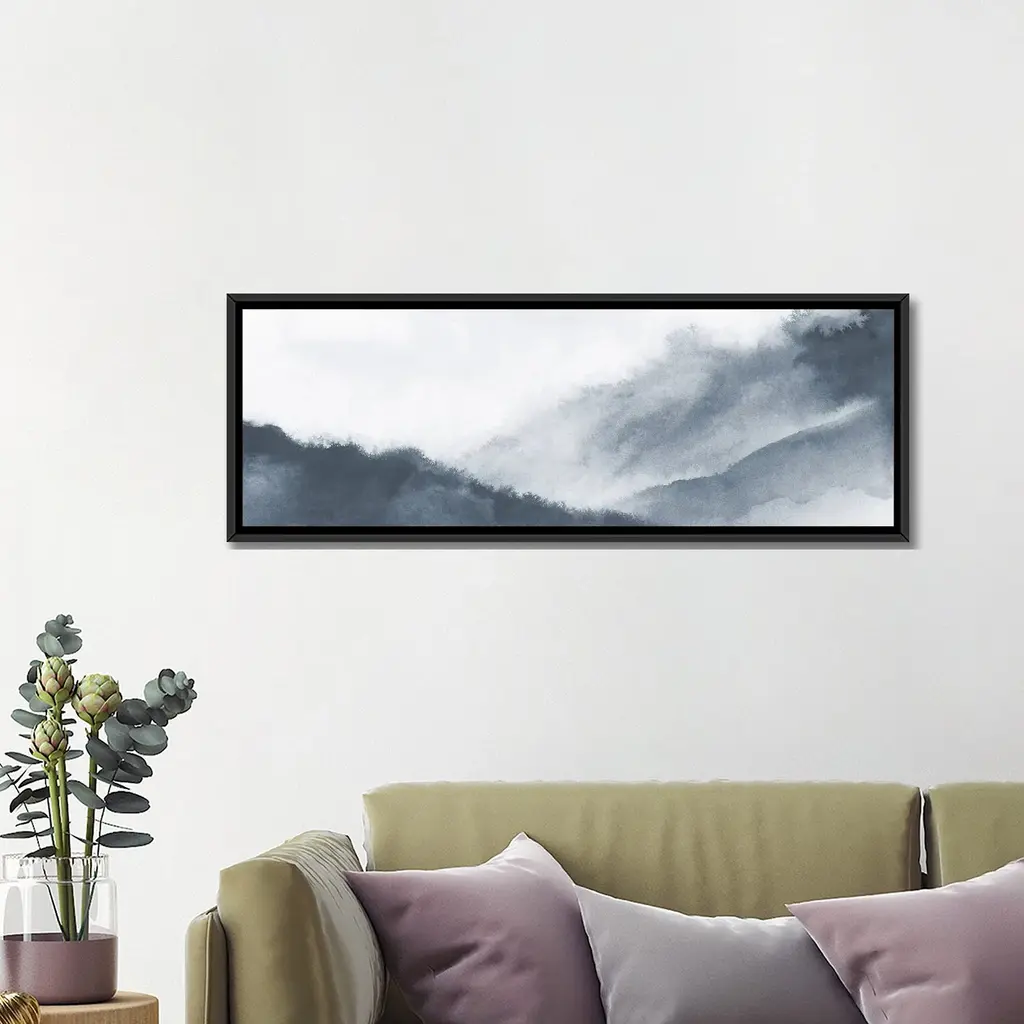 Icanvas "Misty Mountains In Gray Watercolor - Panoramic" By Nouveau Prints Framed Canvas Print - 16x48 - Black