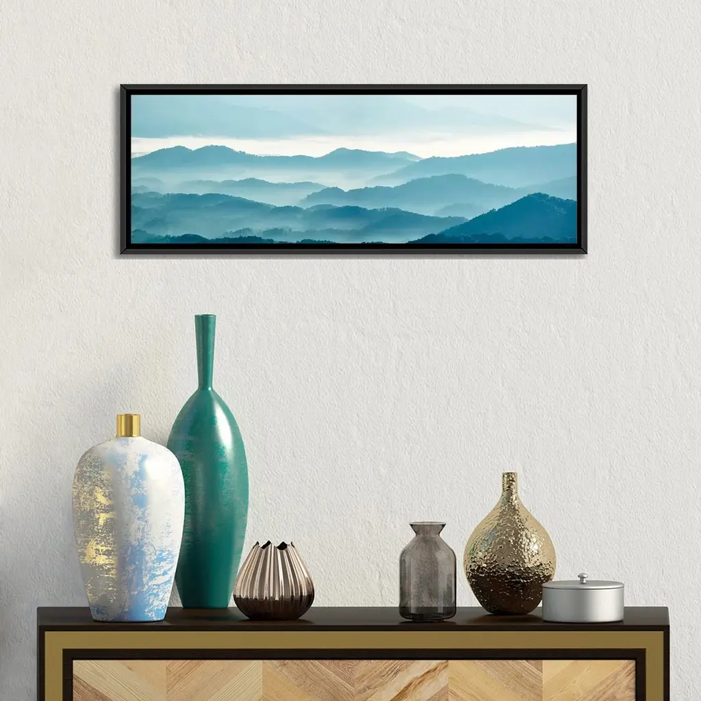 Icanvas "Misty Mountains X" By James Mcloughlin Framed Canvas Print - 12x36 - Black