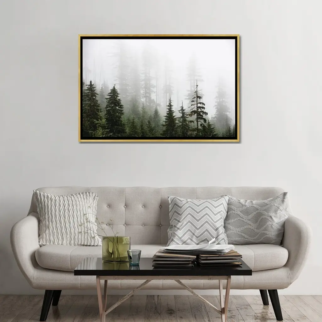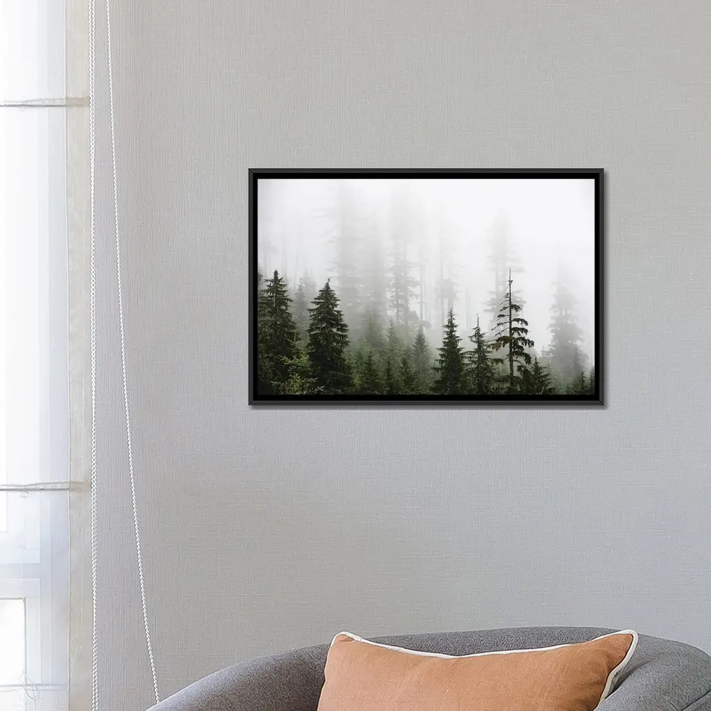 Icanvas "Misty Woods Forest Mountain Trees" By Nature Magick Framed Canvas Print - Black - 26x40