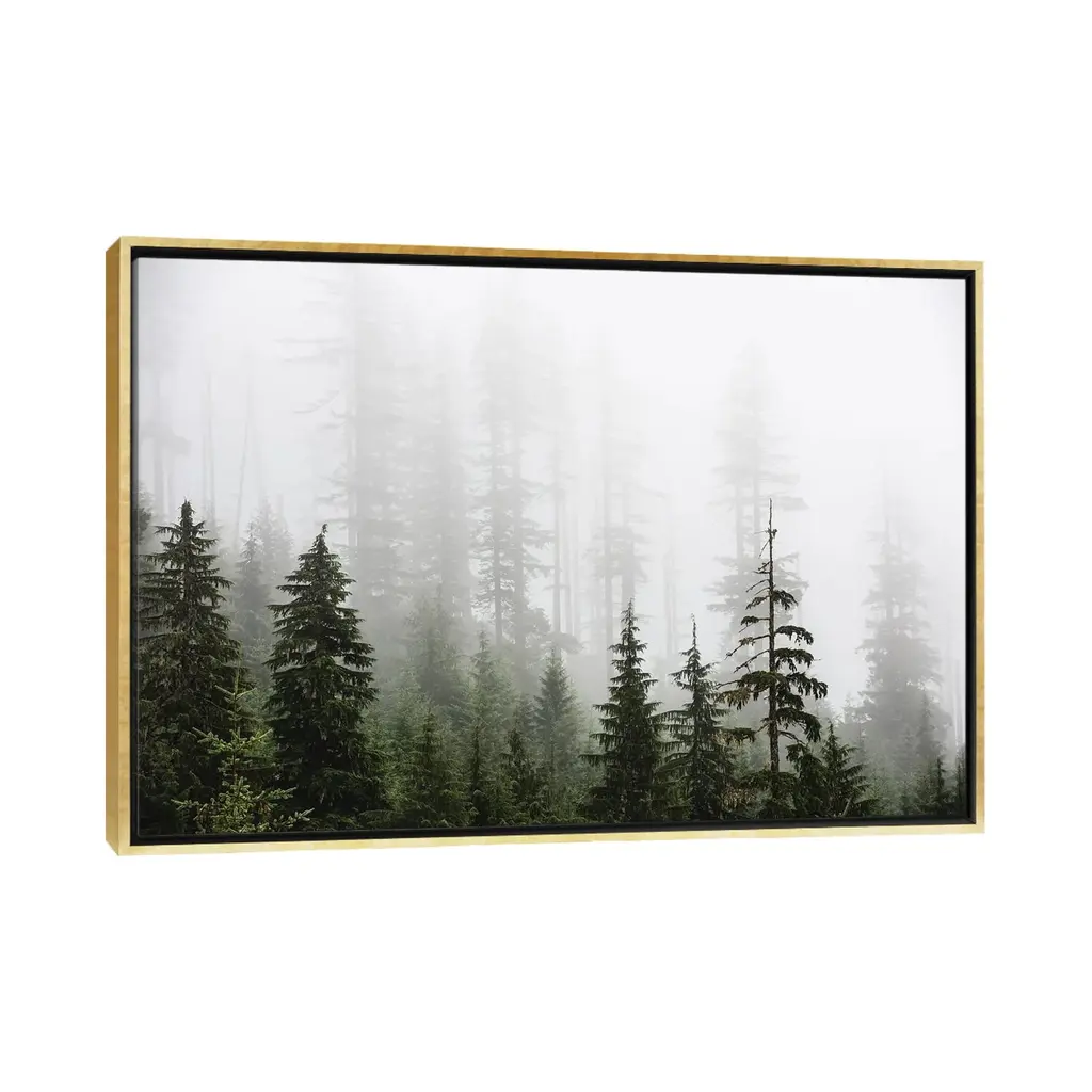 Icanvas "Misty Woods Forest Mountain Trees" By Nature Magick Framed Canvas Print - White - 32x48