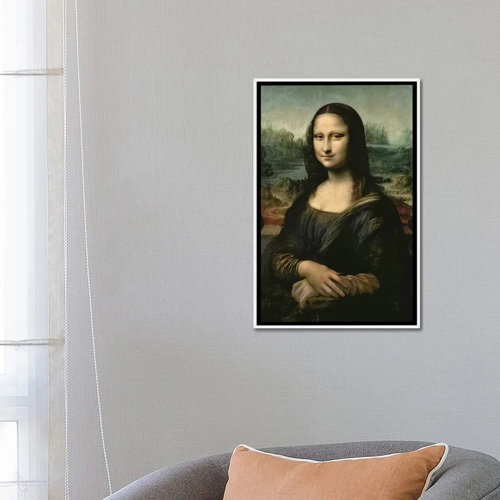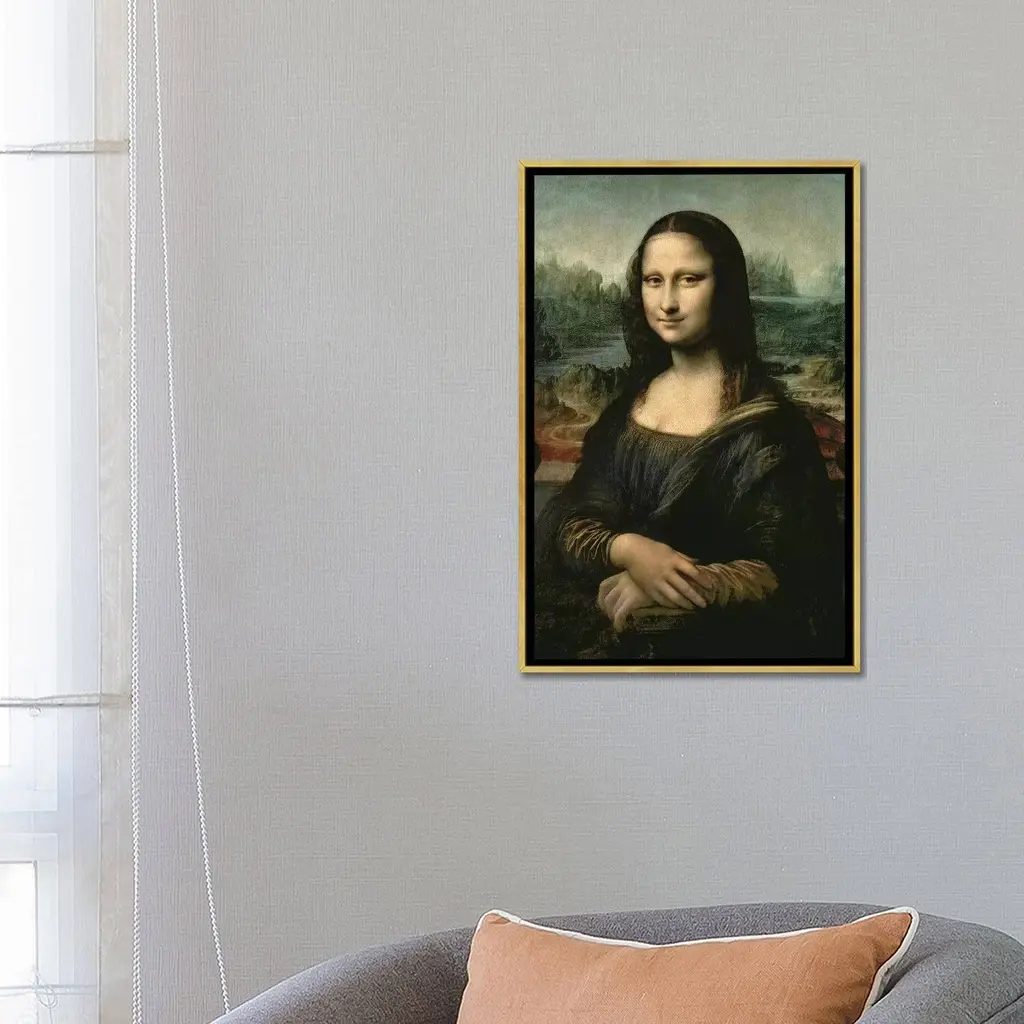 Icanvas "Mona Lisa, C.1503-6 " By Leonardo Da Vinci Framed Canvas Print - Gold - 40x26