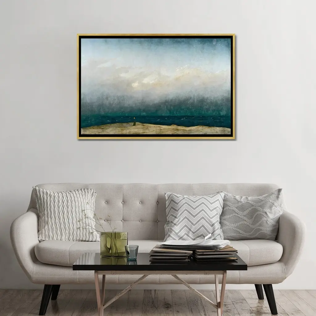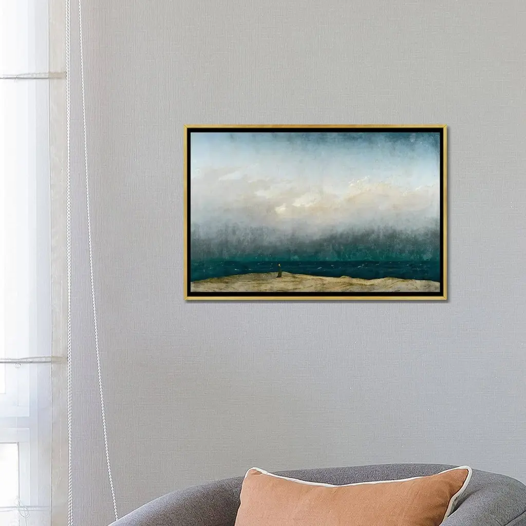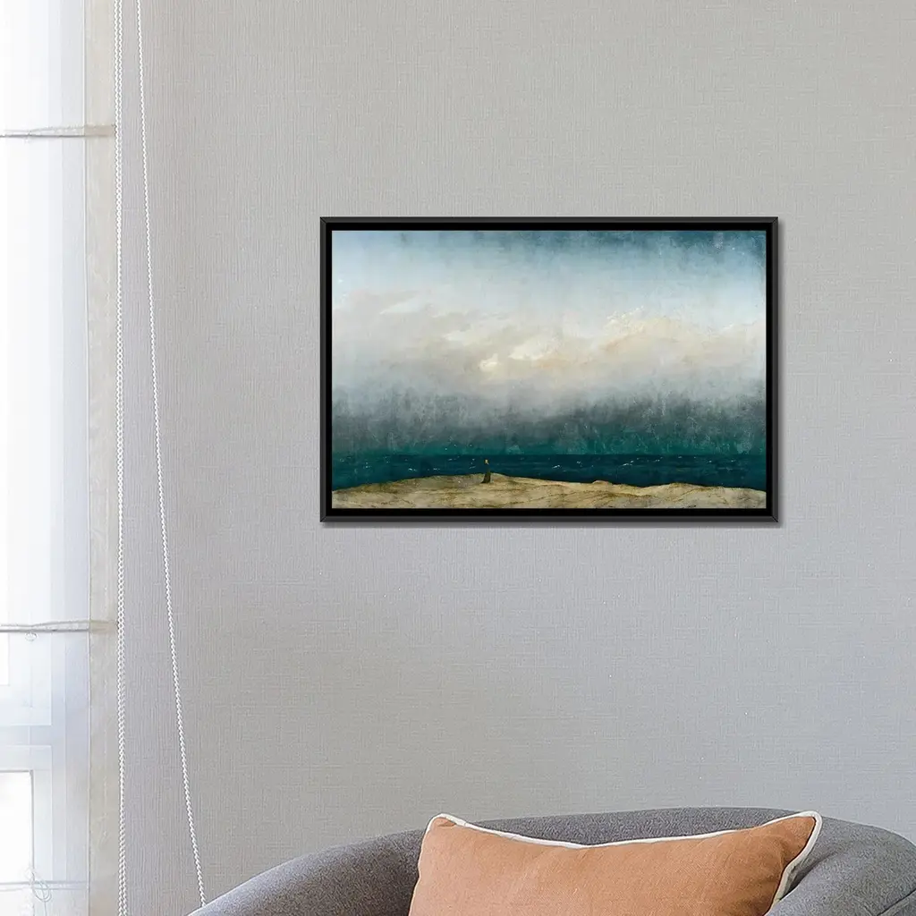Icanvas "Monk By Sea, 1809 " By Caspar David Friedrich Framed Canvas Print - Black - 18x26