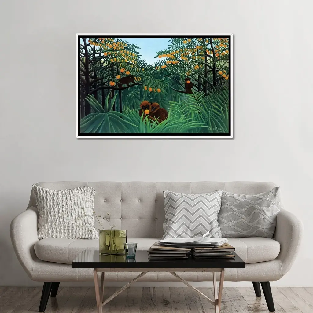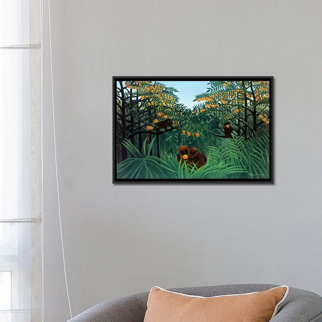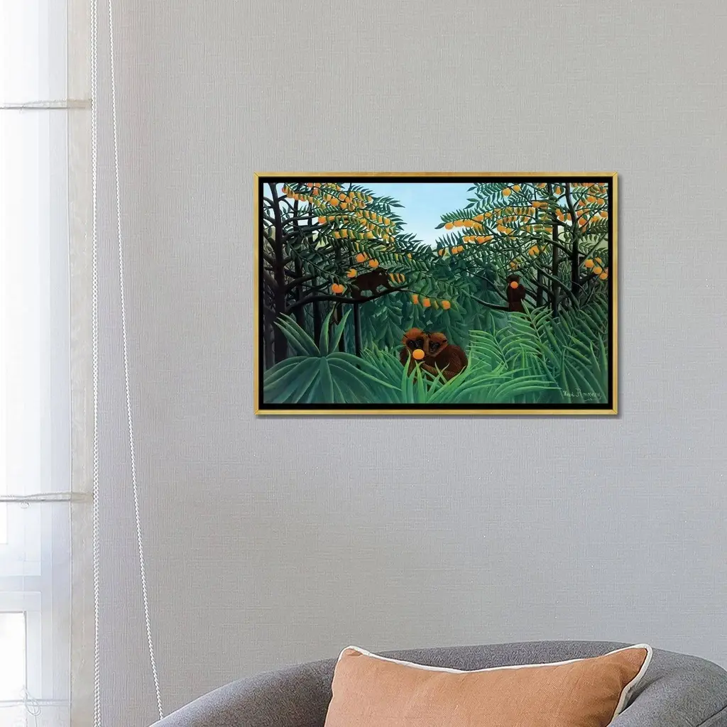 Icanvas "Monkeys In The Jungle, 1910" By Henri Rousseau Framed Canvas Print - Black - 26x40