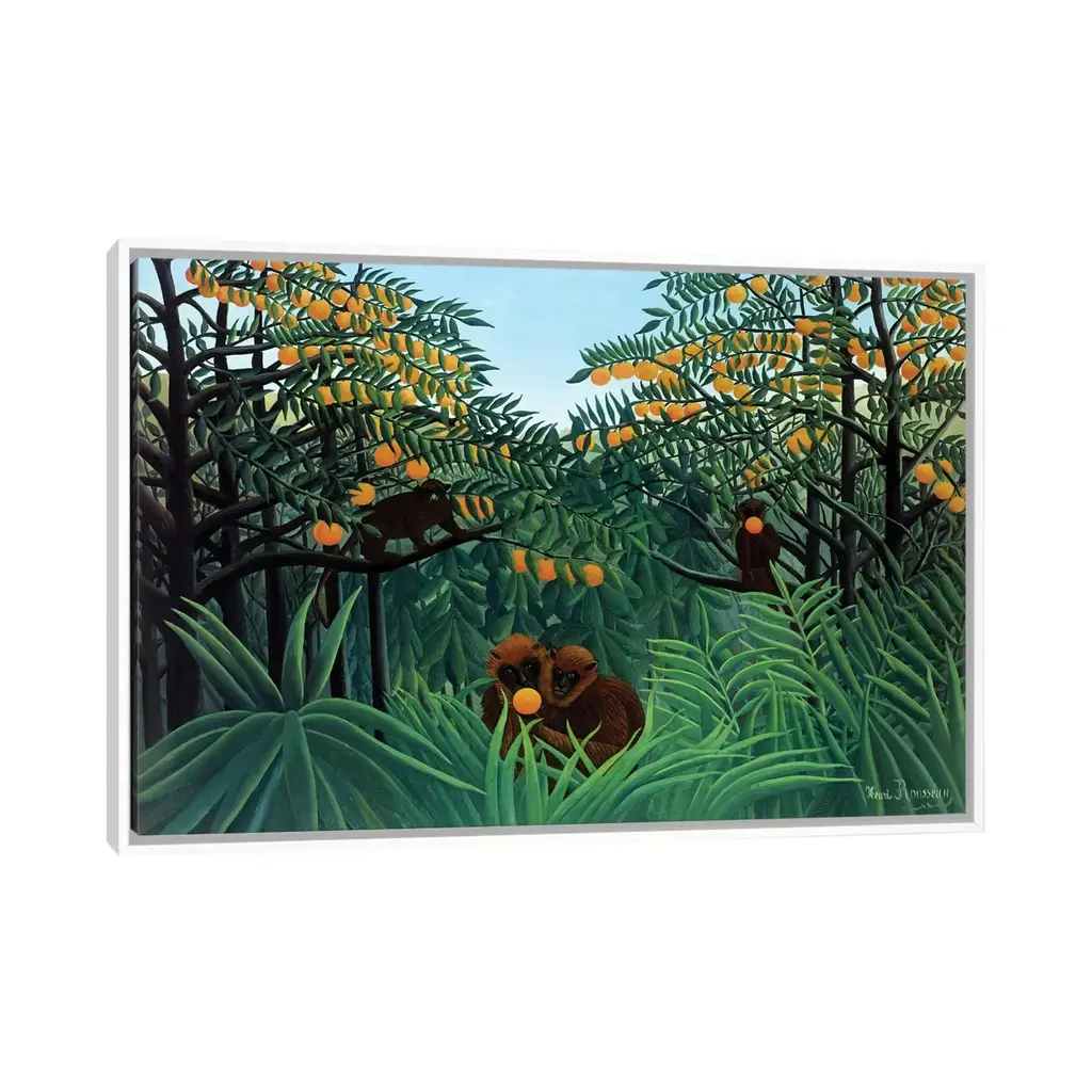 Icanvas "Monkeys In The Jungle, 1910" By Henri Rousseau Framed Canvas Print - Gold - 18x26