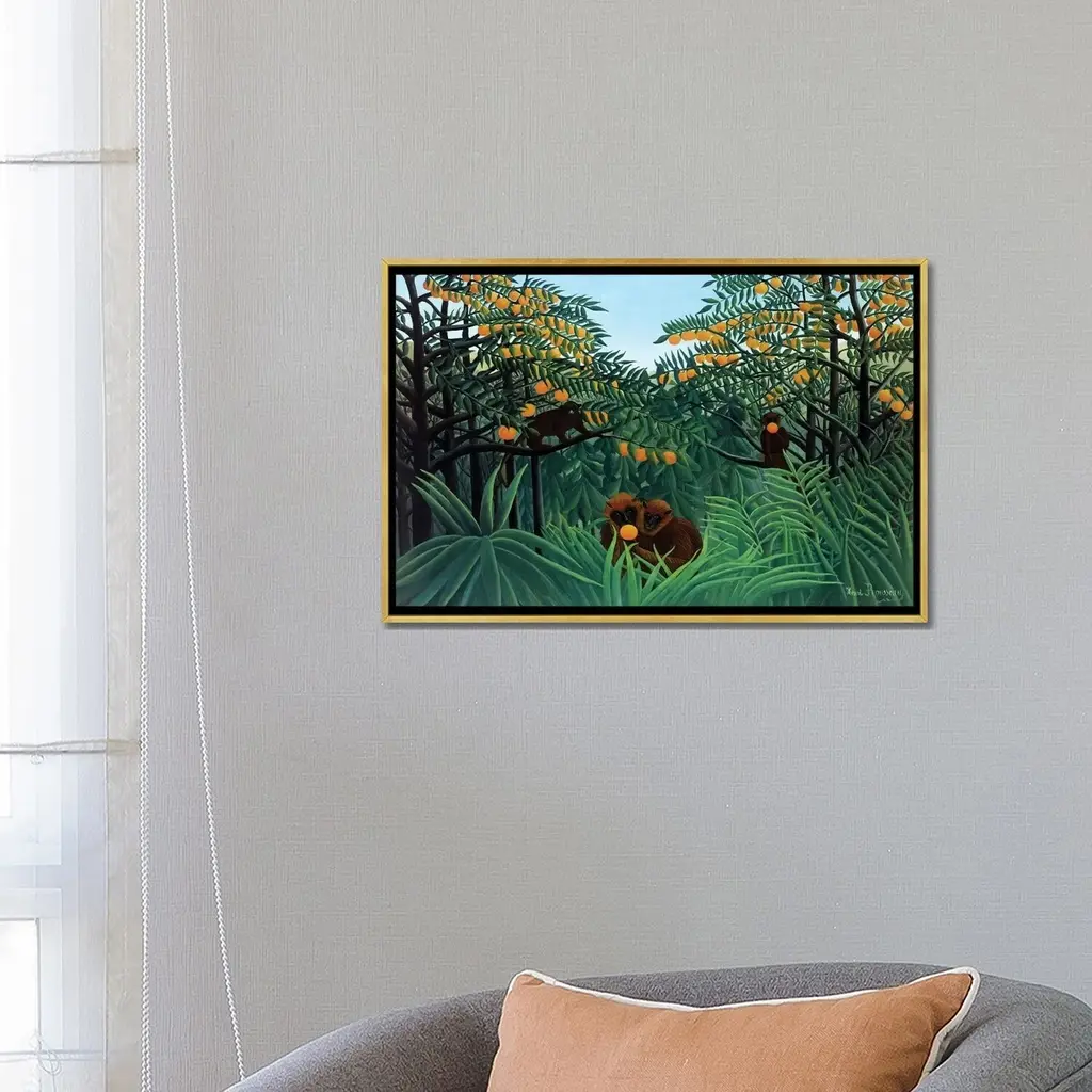 Icanvas "Monkeys In The Jungle, 1910" By Henri Rousseau Framed Canvas Print - White - 26x40