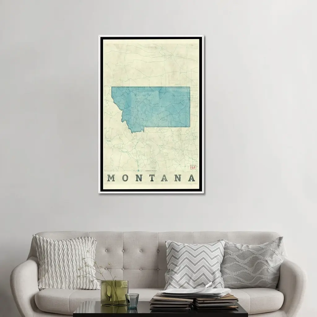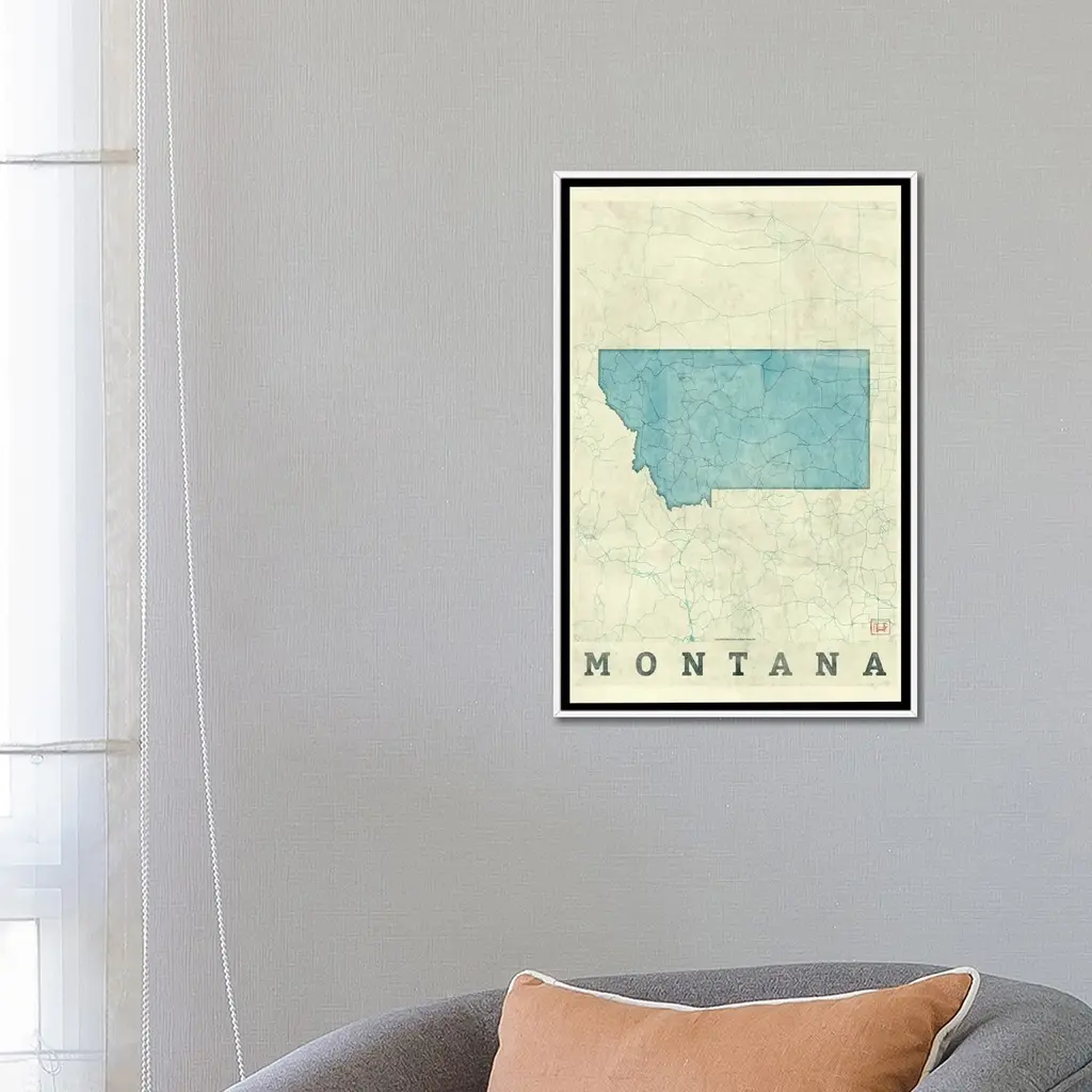 Icanvas "Montana Map" By Hubert Roguski Framed Canvas Print - Gold - 26x18