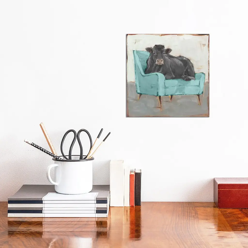 Icanvas "Moo-Ving In Iv - Black" By Ethan Harper Canvas Print - 37x37x1.5