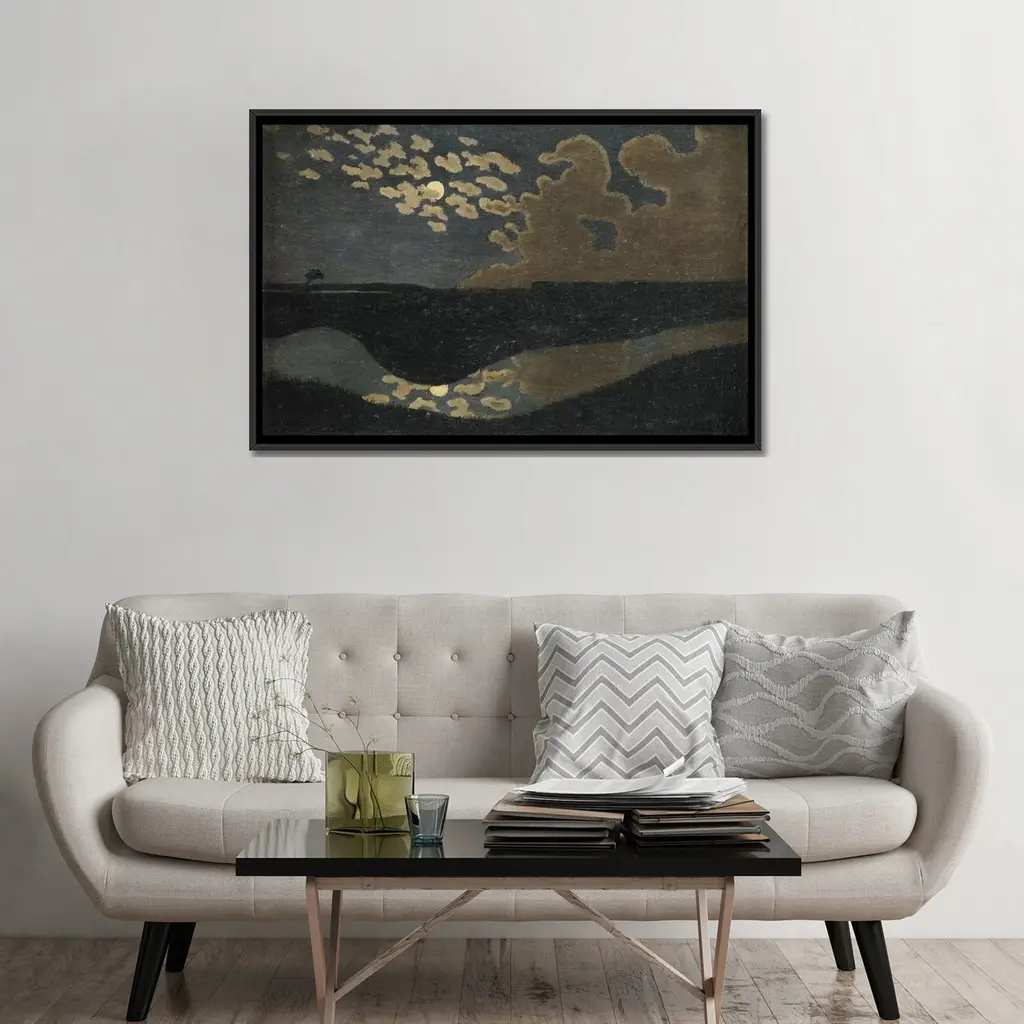 Icanvas "Moonlight, 1894 " By Felix Edouard Vallotton Framed Canvas Print - Gold - 26x40