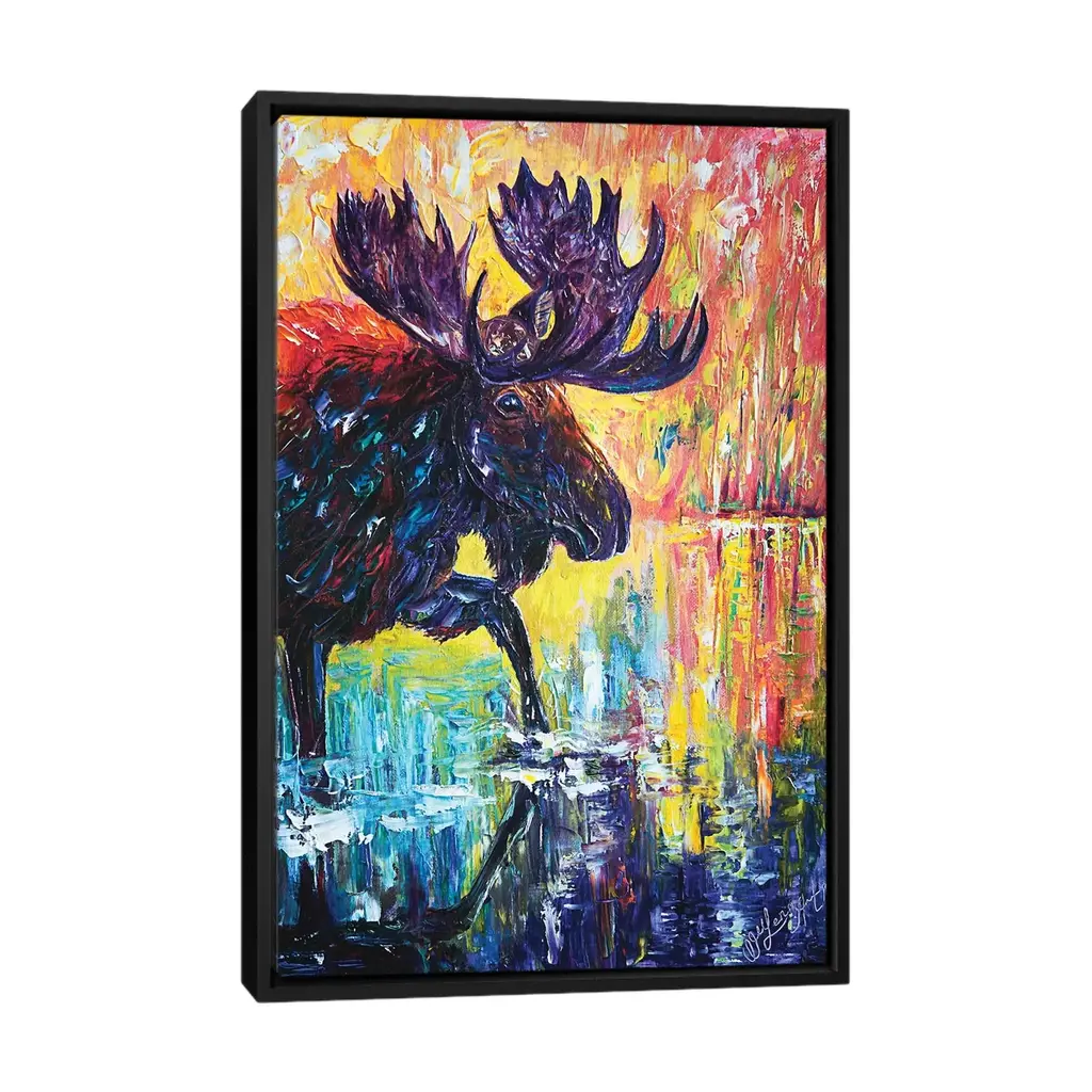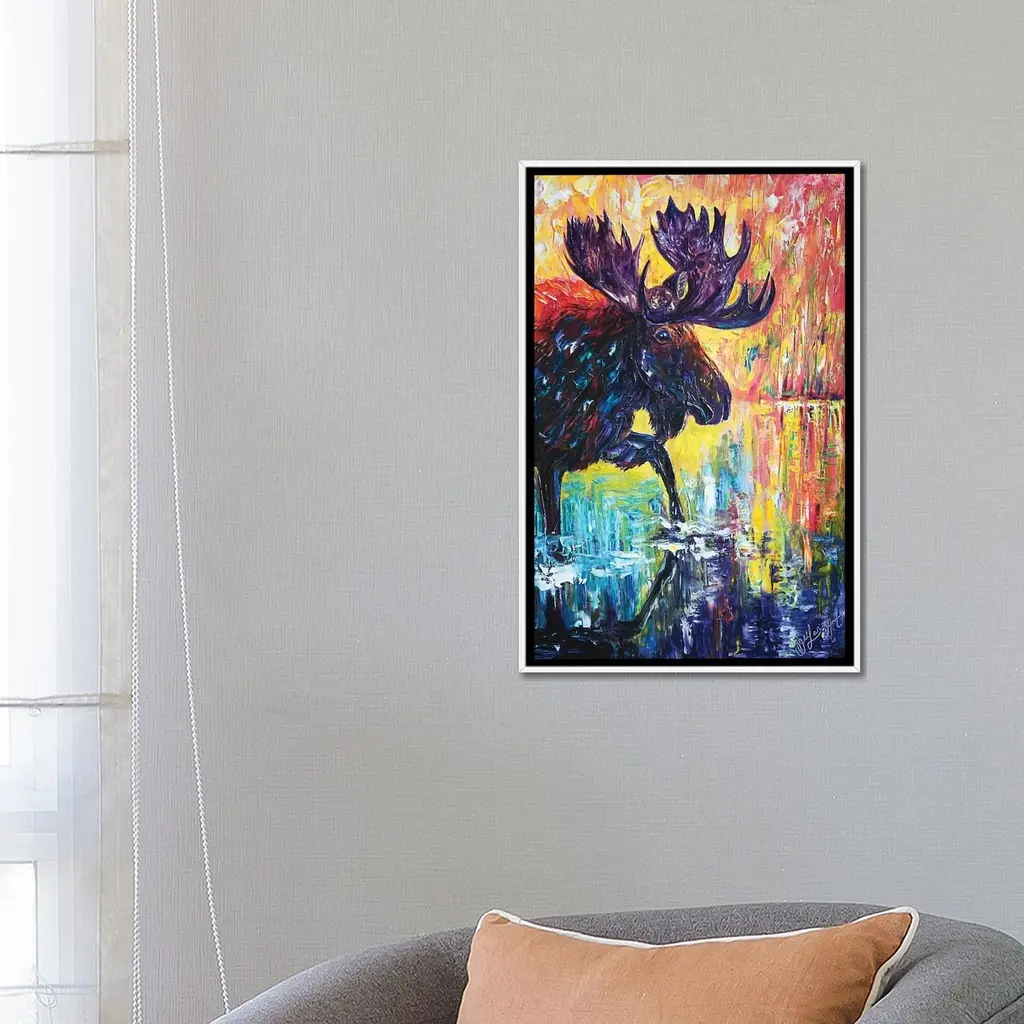 Icanvas "Moose" By Olena Art Framed Canvas Print - Black - 40x26