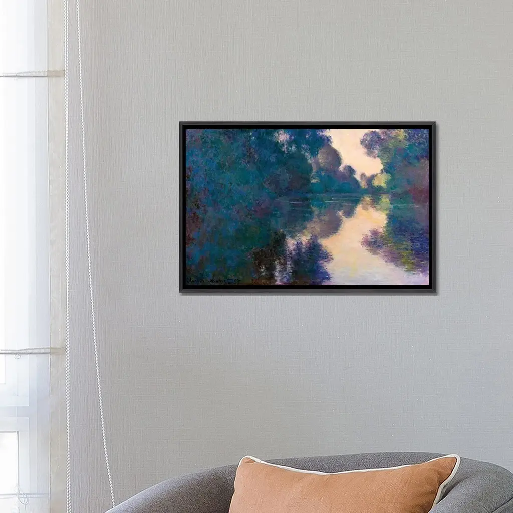 Icanvas "Morning On The Seine Near Giverny" By Claude Monet Framed - Charcoal - 26x40