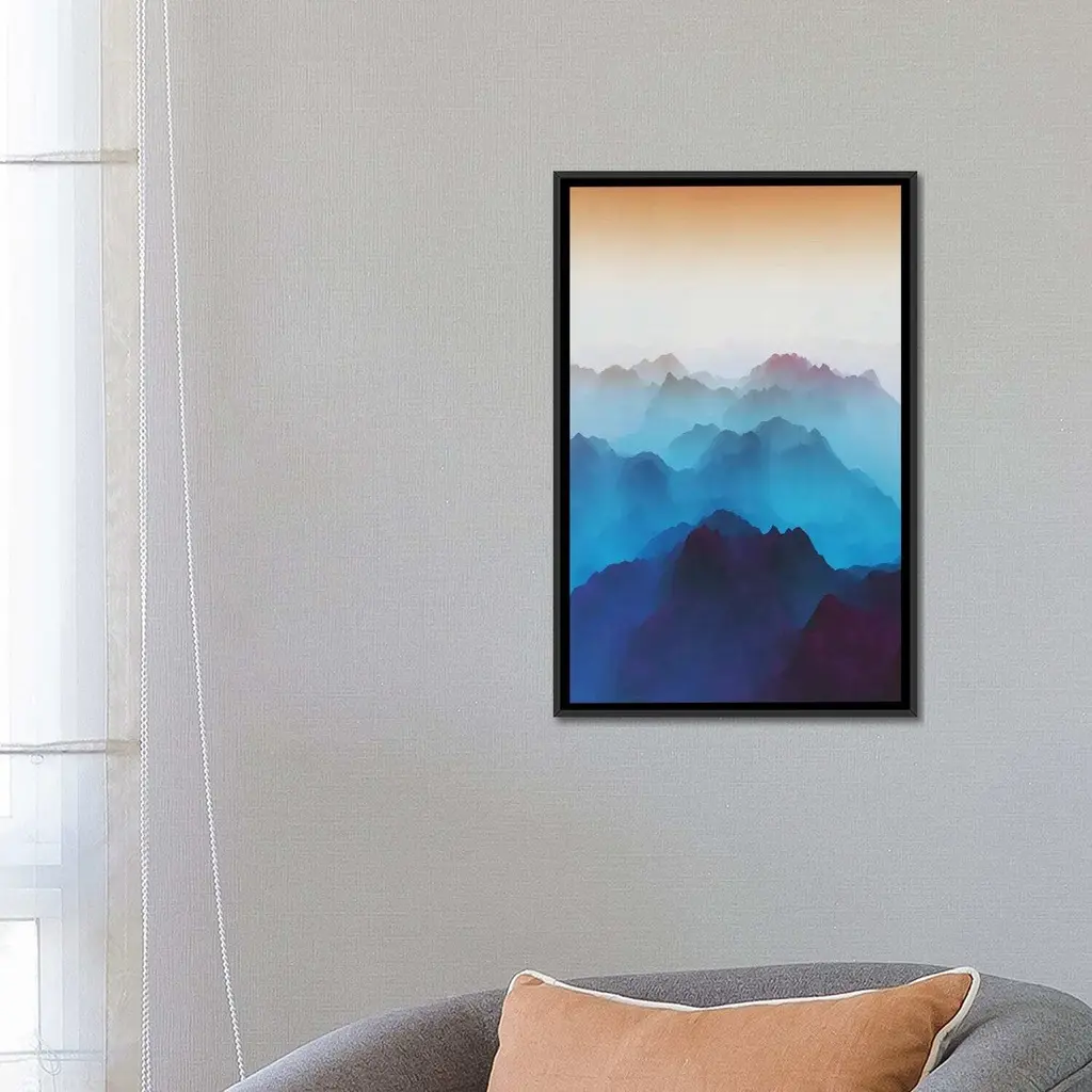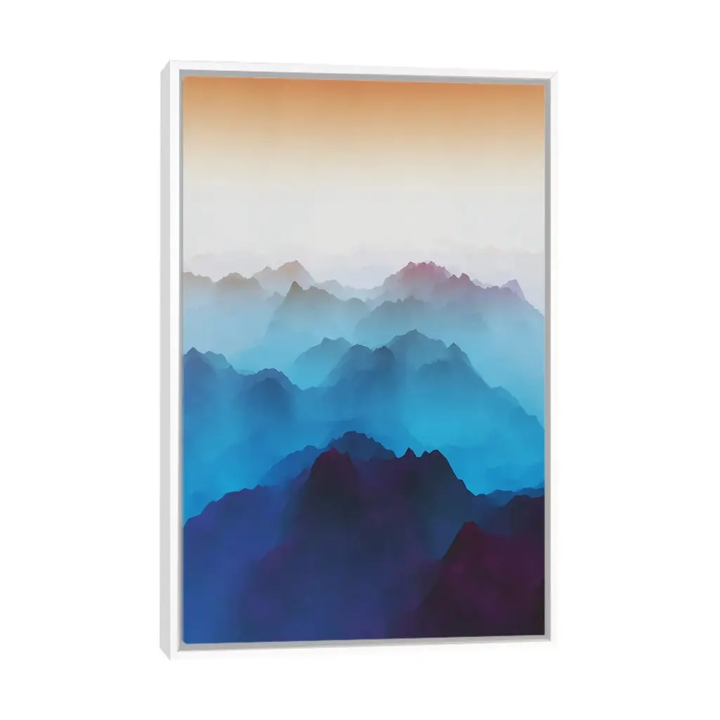 Icanvas "Mountains Under Bluish Fog" By Angel Estevez Framed Canvas Print - White - 26x18