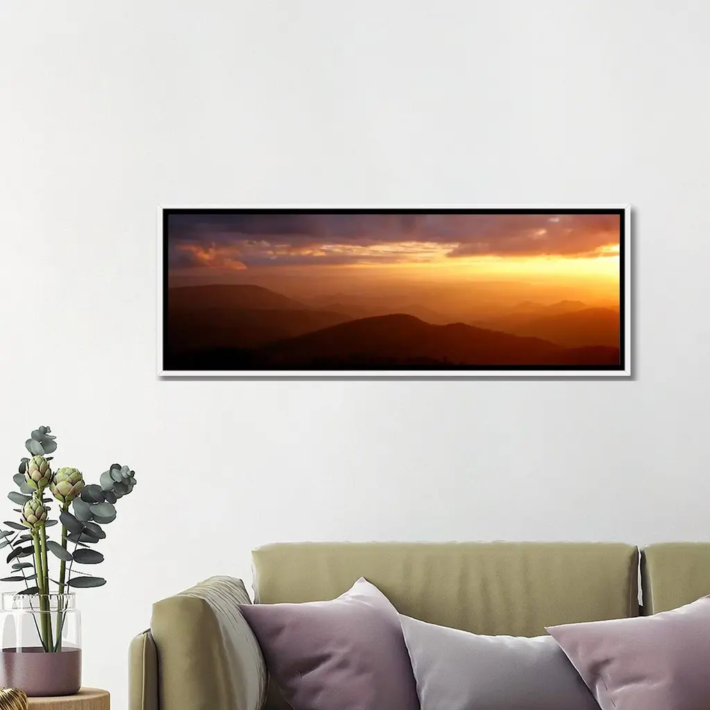 Icanvas "Mountainssunset, Blue Ridge Parkway, Great Smoky Mountains, Nc, Usa" By Panoramic Images Framed Canvas Print - 16x48 - White