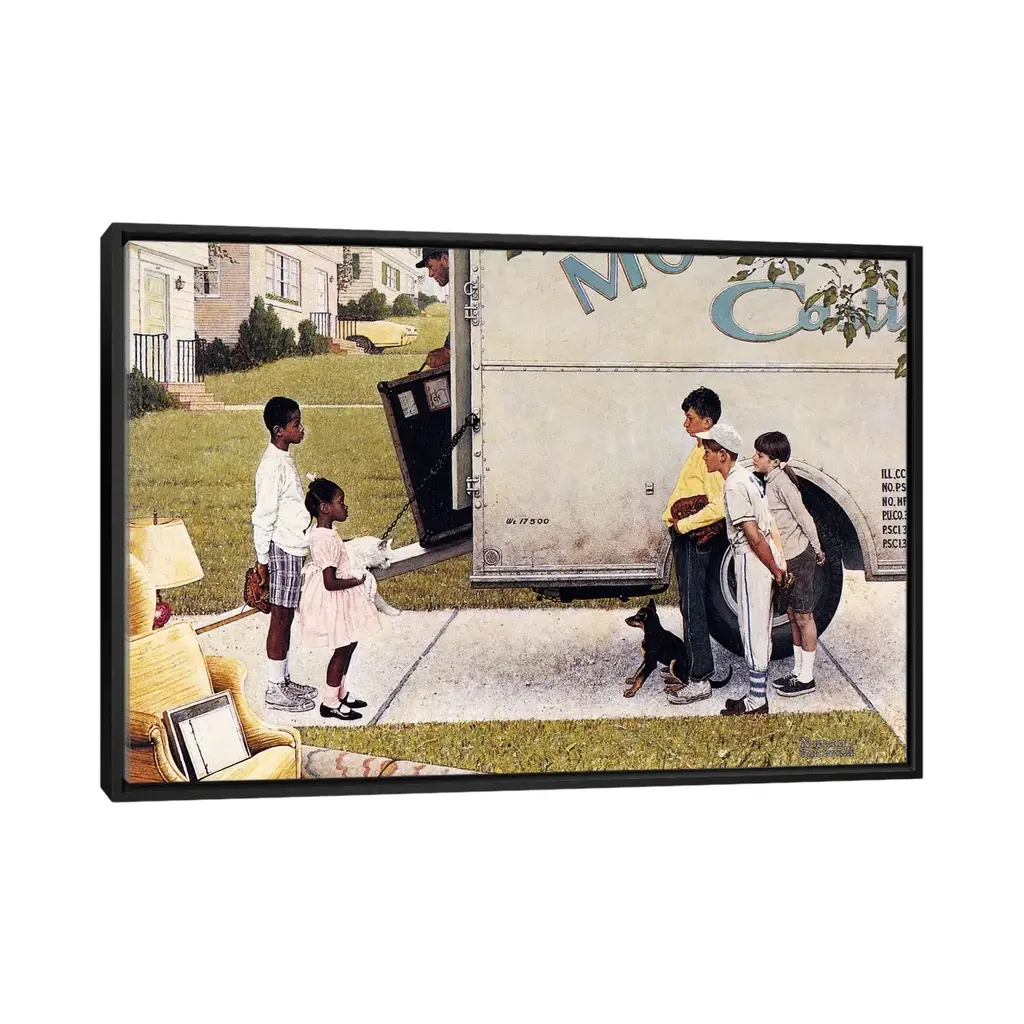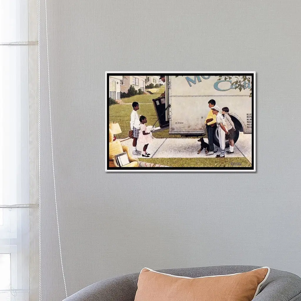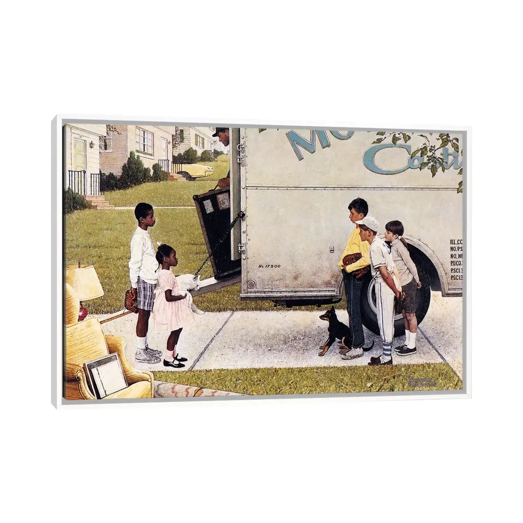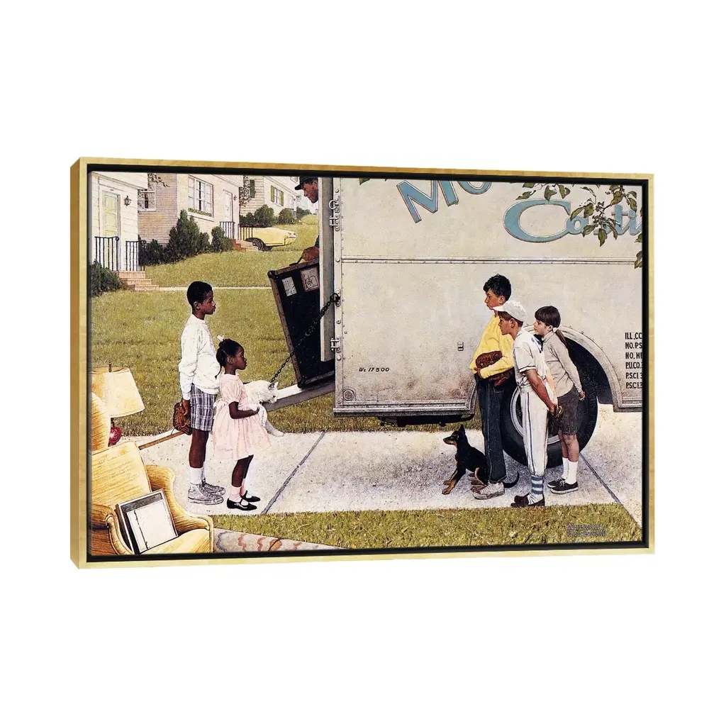 Icanvas "Moving In (New Kids In The Neighborhood)" By Norman Rockwell Framed Canvas Print - Gold - 18x26