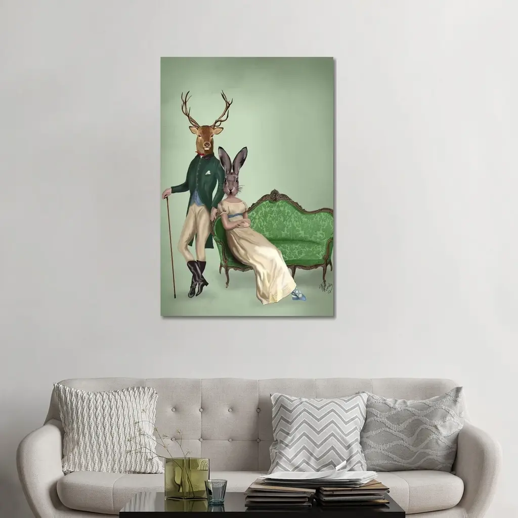Icanvas "Mr. Deer & Mrs. Rabbit" By Fab Funky Canvas Print - 18x12x1.5