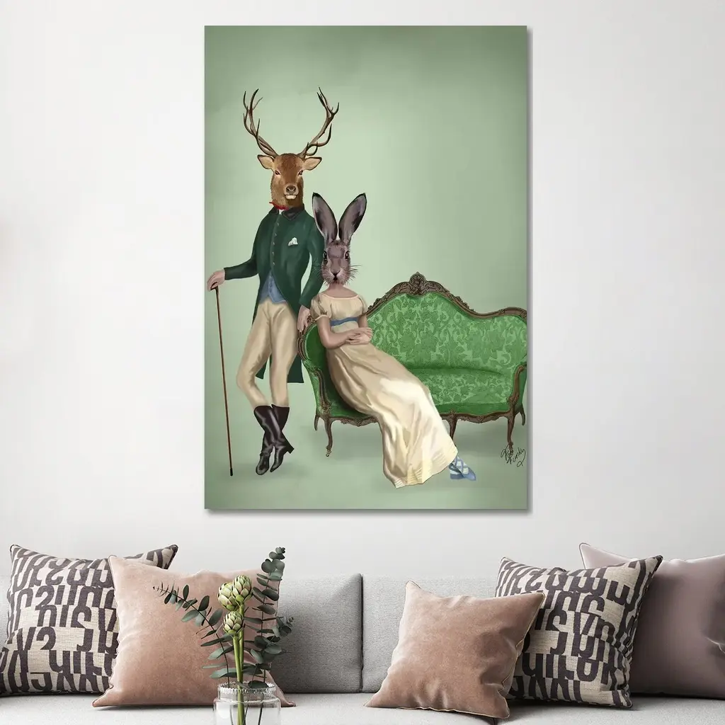 Icanvas "Mr. Deer & Mrs. Rabbit" By Fab Funky Canvas Print - 40x26x1.5