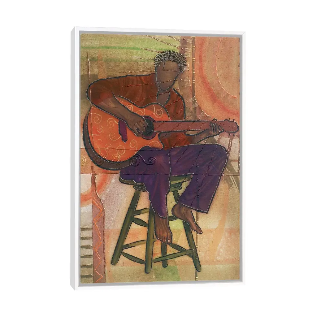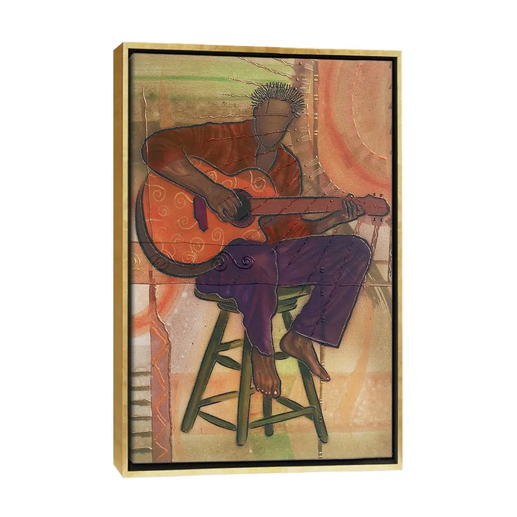 Icanvas "Mr Guitarman" By Fred Odle Framed Canvas Print - Gold - 26x18