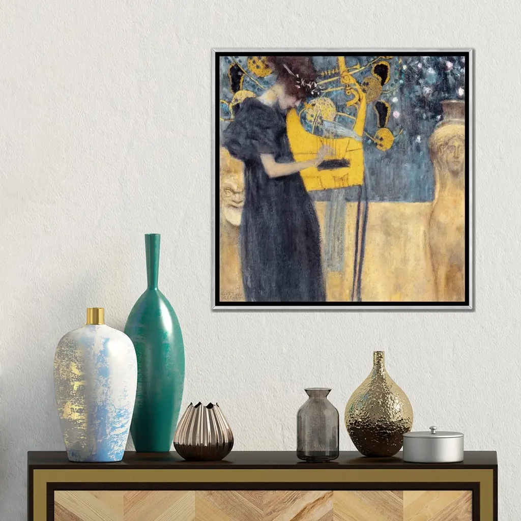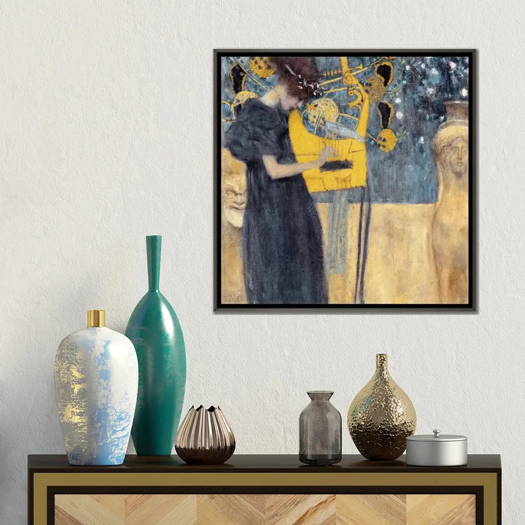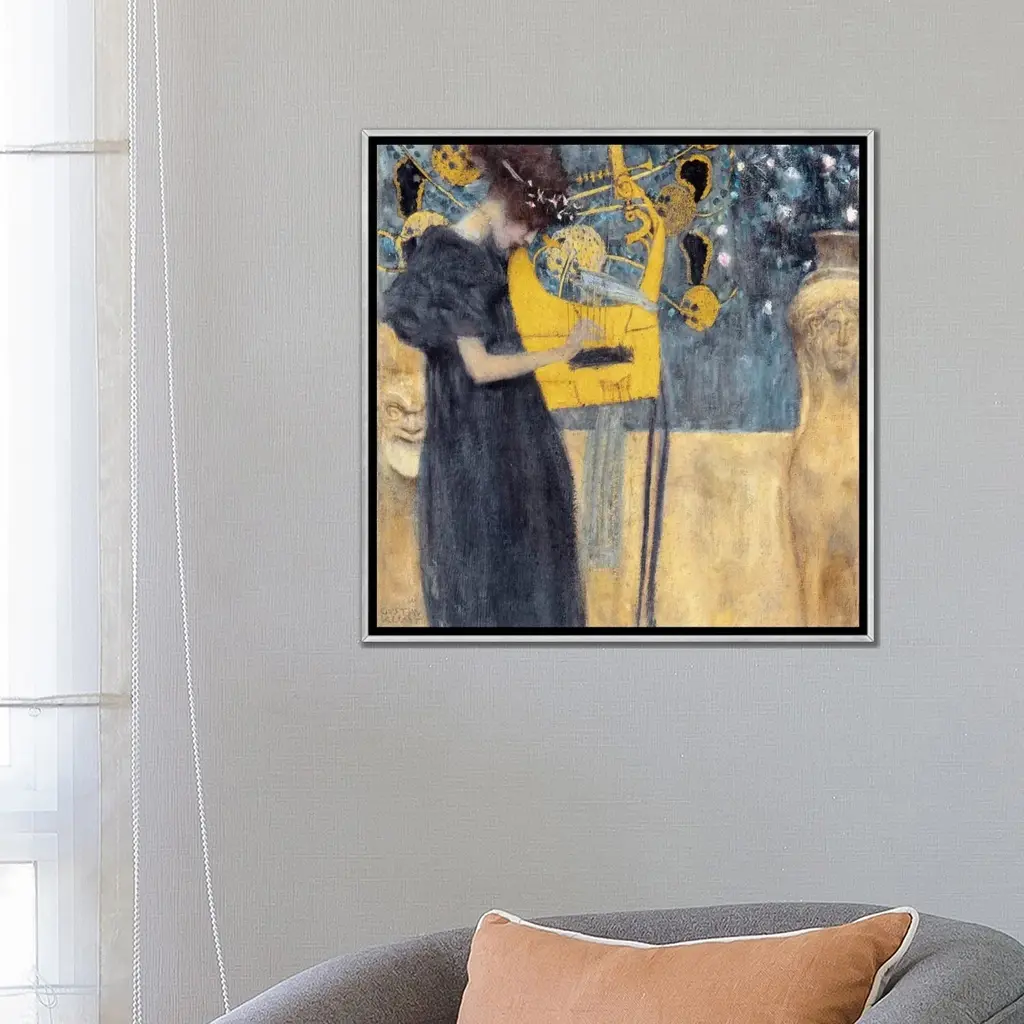 Icanvas "Musik 1895" By Gustav Klimt Framed - 12x12 - Charcoal