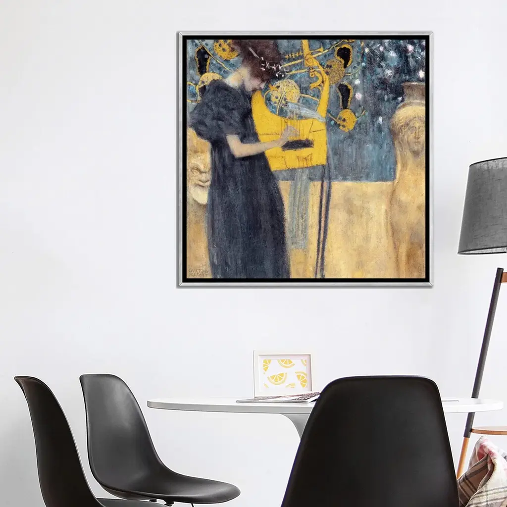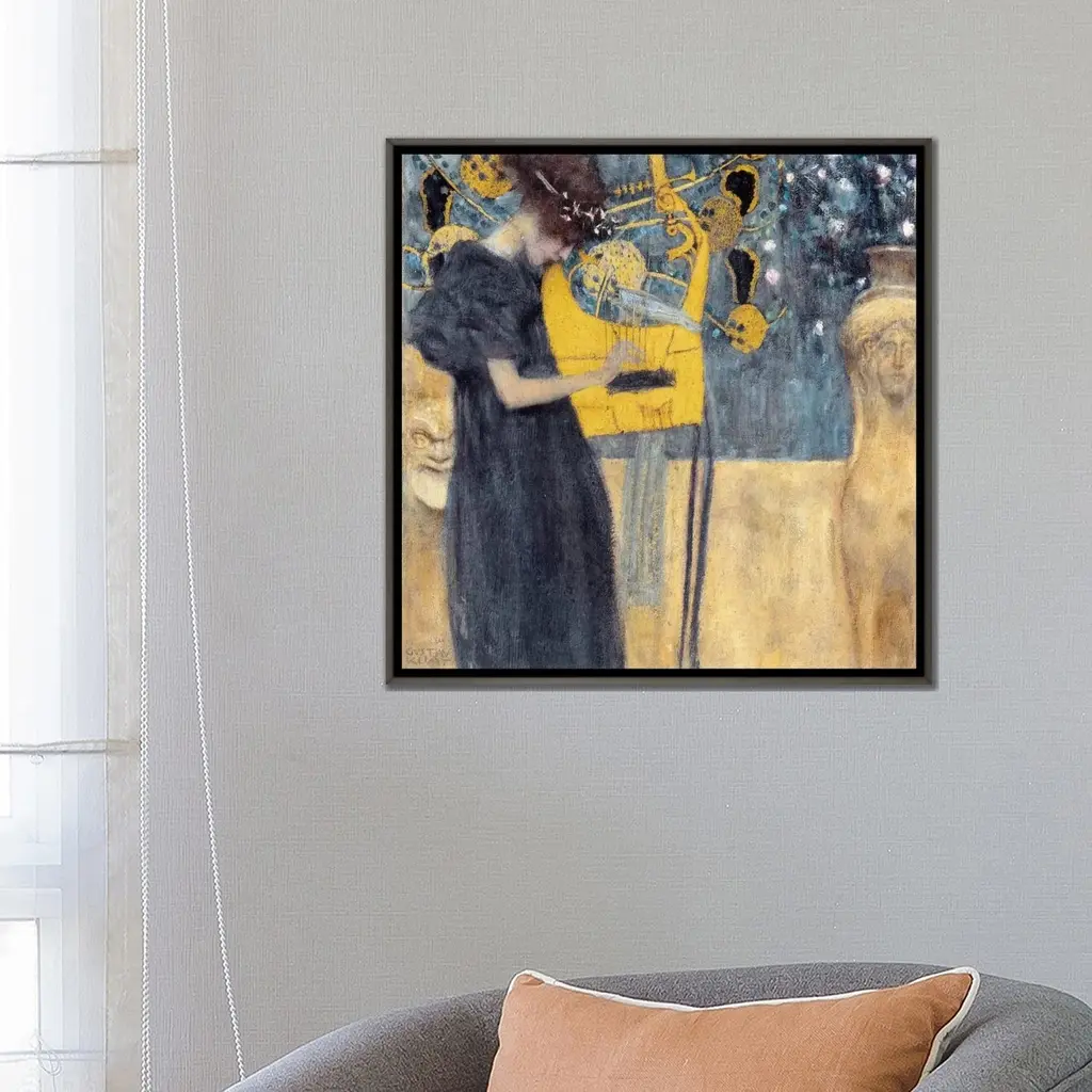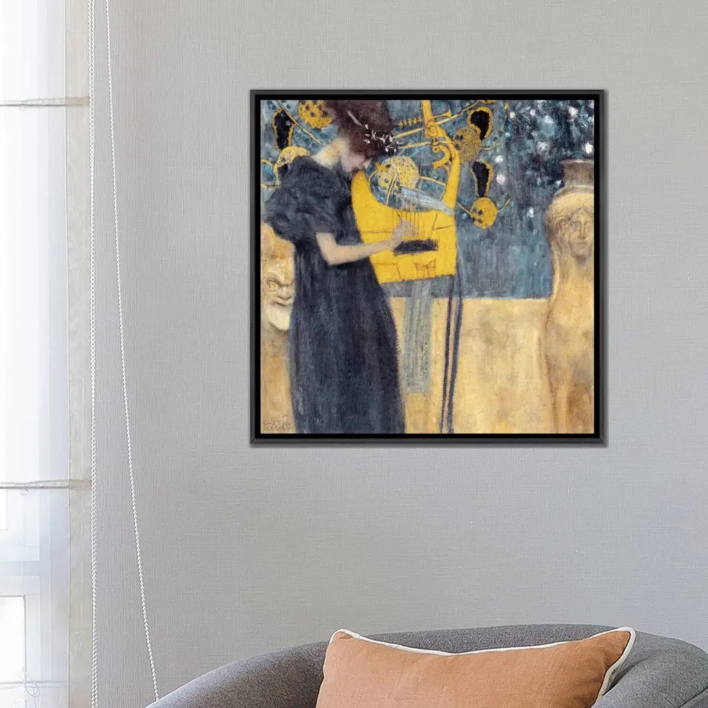 Icanvas "Musik 1895" By Gustav Klimt Framed - 26x26 - Charcoal