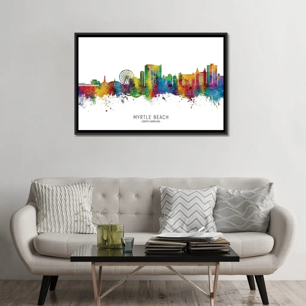 Icanvas "Myrtle Beach Skyline City Name" By Michael Tompsett Framed Canvas Print - Black - 18x26