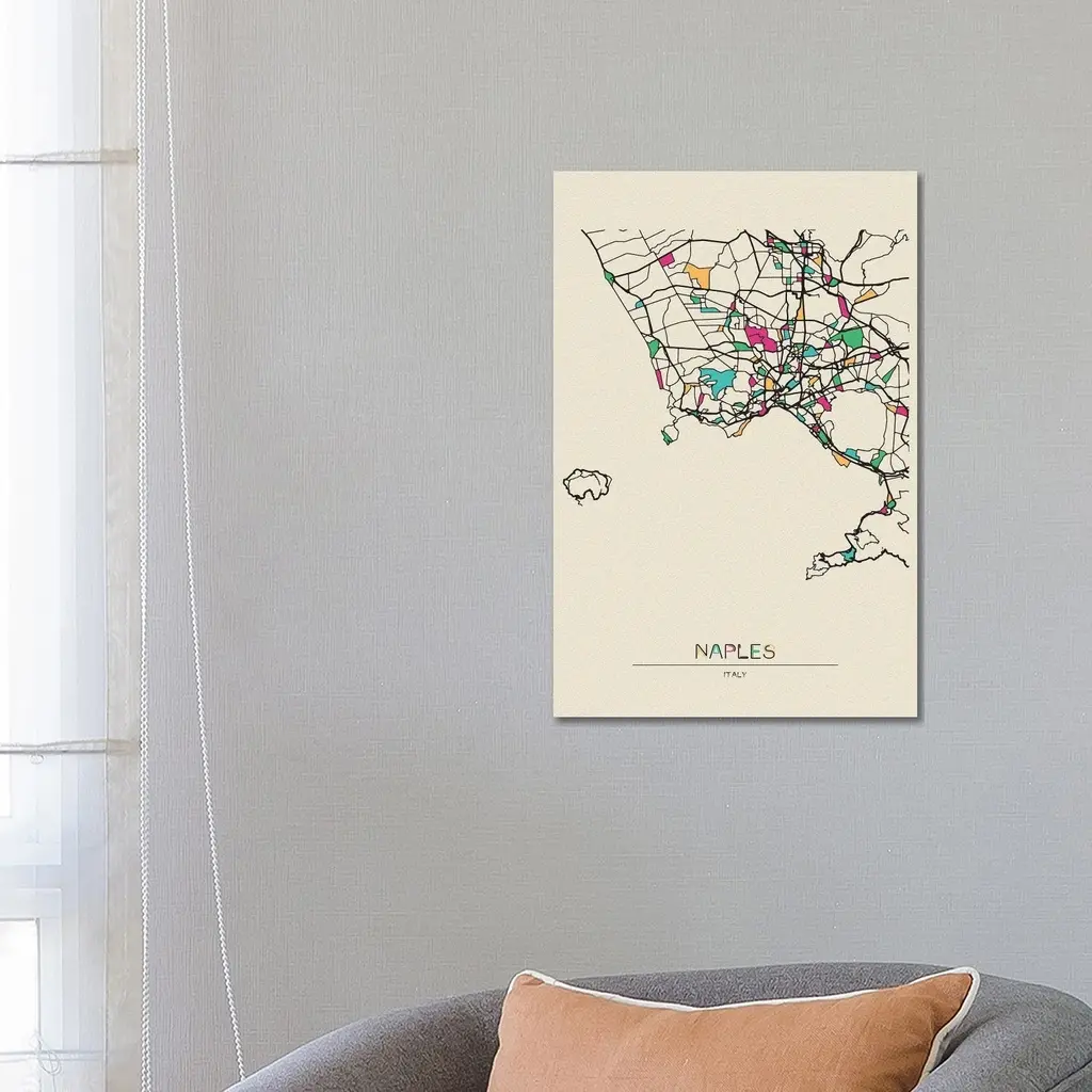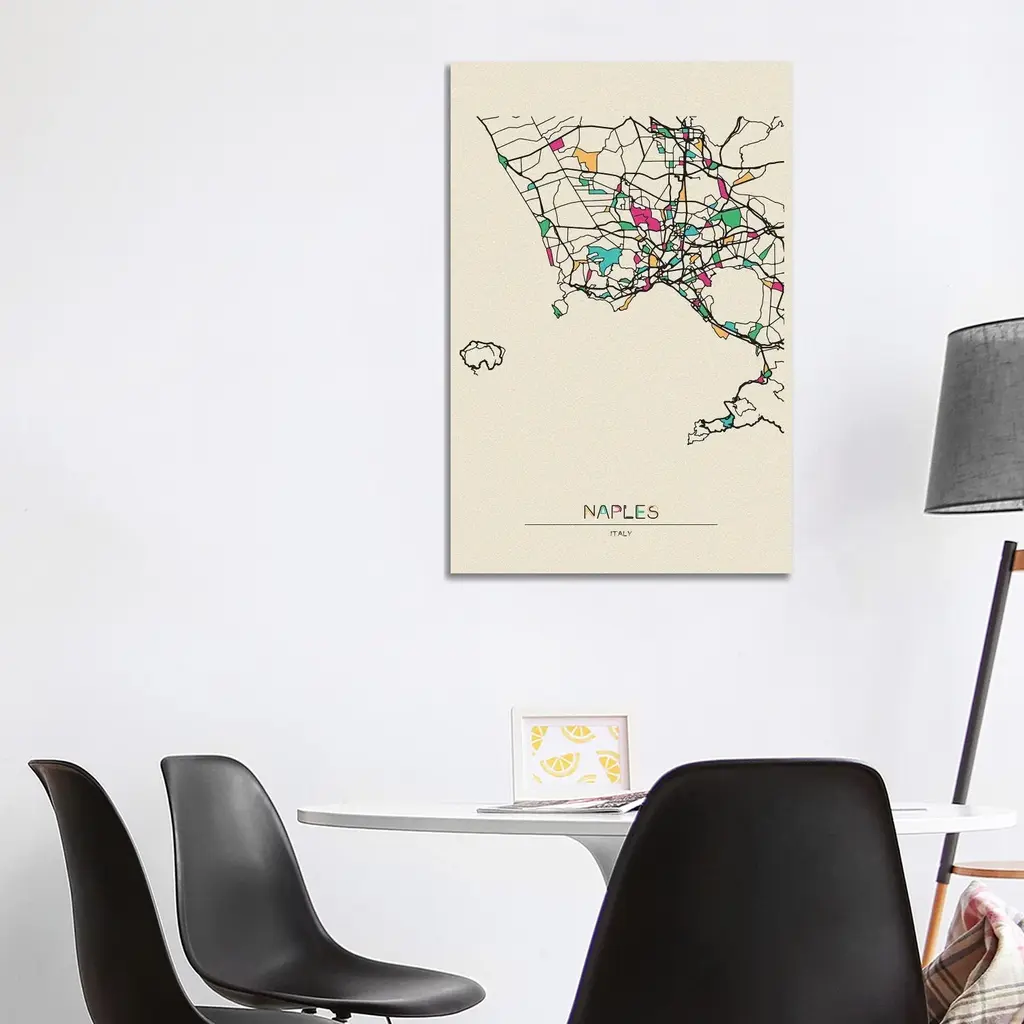 Icanvas "Naples, Italy Map" By Ayse Deniz Akerman Canvas Print - 40x26x1.5