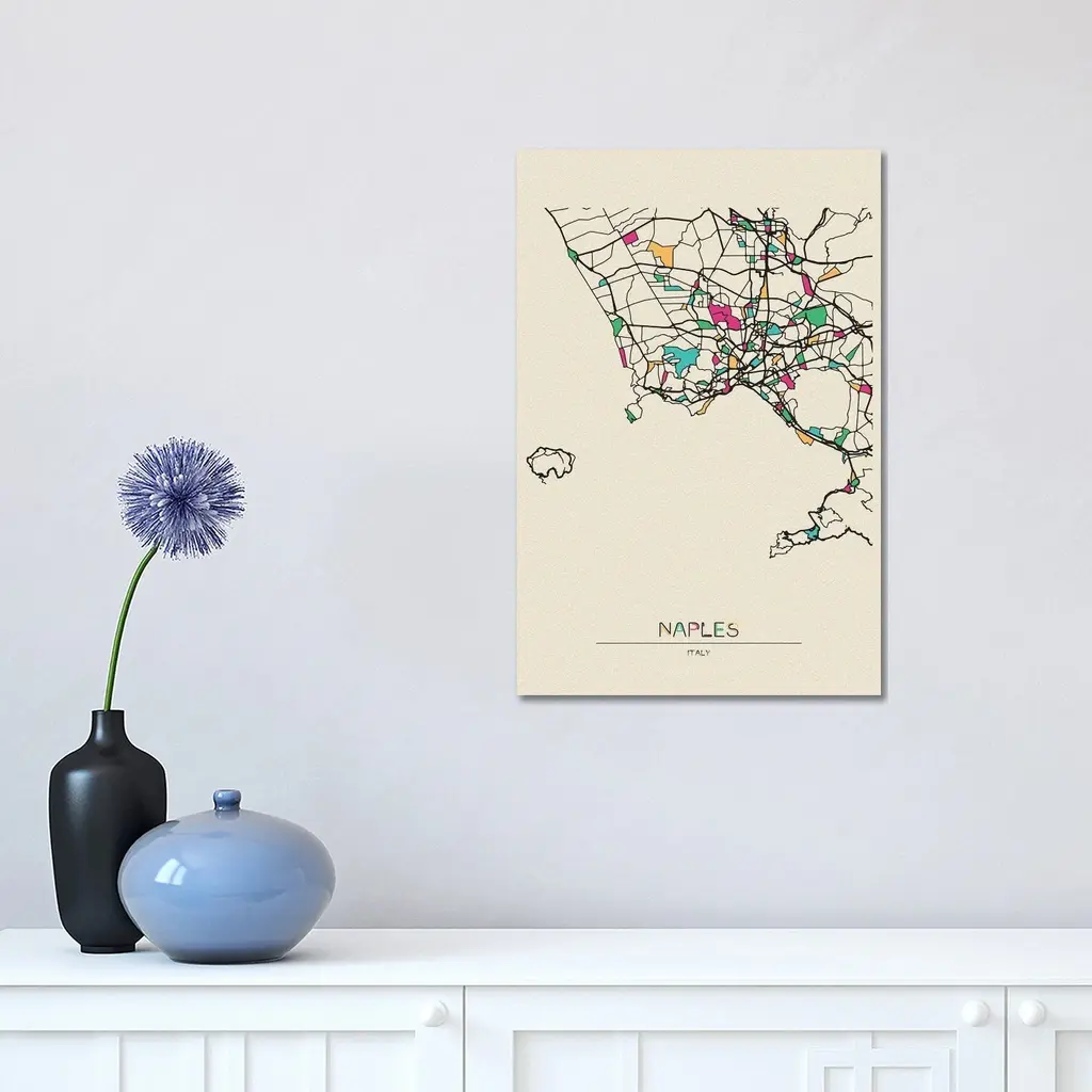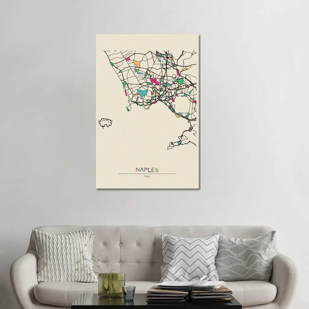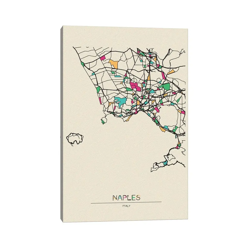 Icanvas "Naples, Italy Map" By Ayse Deniz Akerman Canvas Print - 48x32x1.5