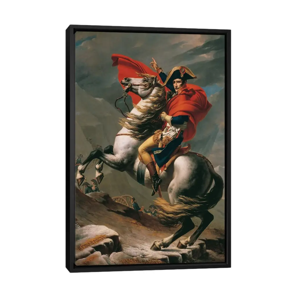 Icanvas "Napoleon Crossing The Alps" By Jacques-Louis David Framed Canvas Print - Gold - 26x18