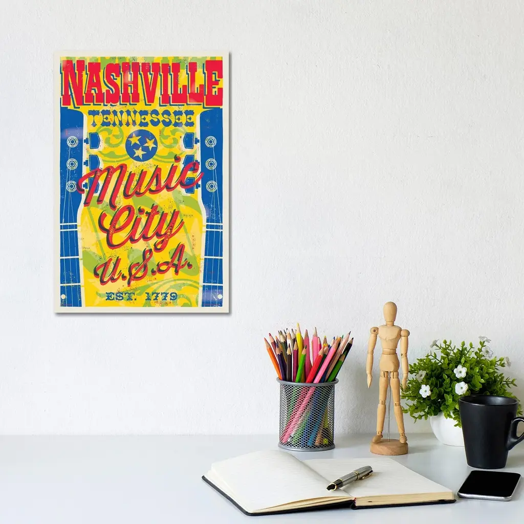 Icanvas "Nashville Music City U.s.a. Poster" By Jim Zahniser Canvas Print - 12x8x0.75