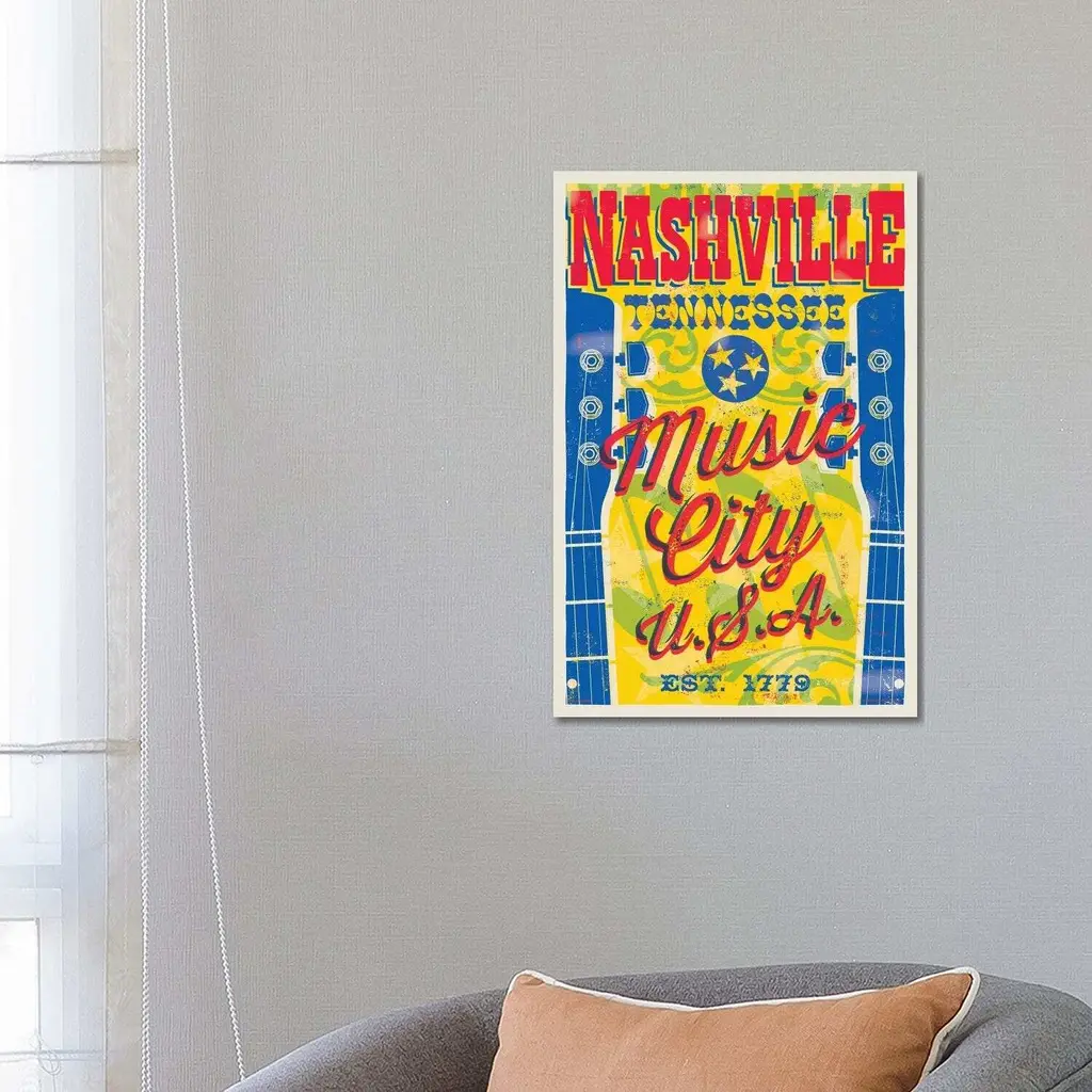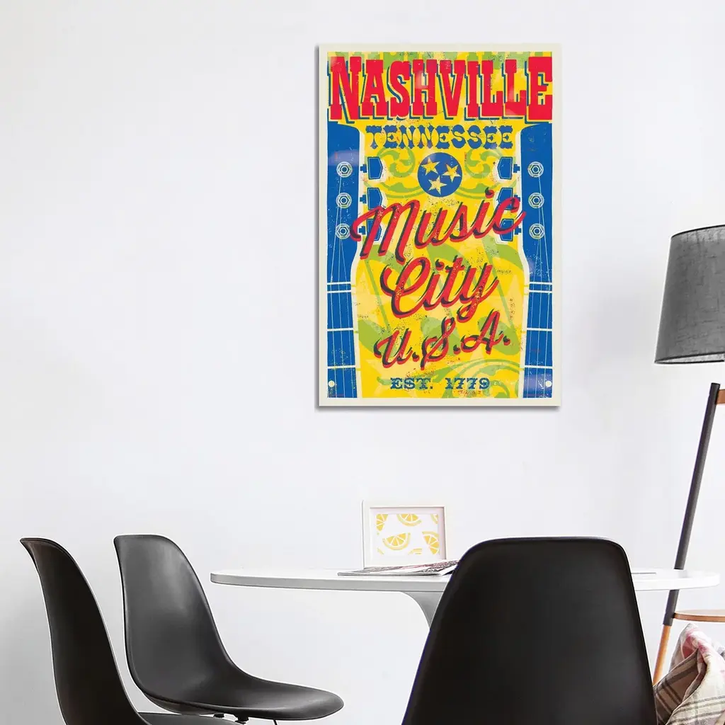 Icanvas "Nashville Music City U.s.a. Poster" By Jim Zahniser Canvas Print - 26x18x1.5