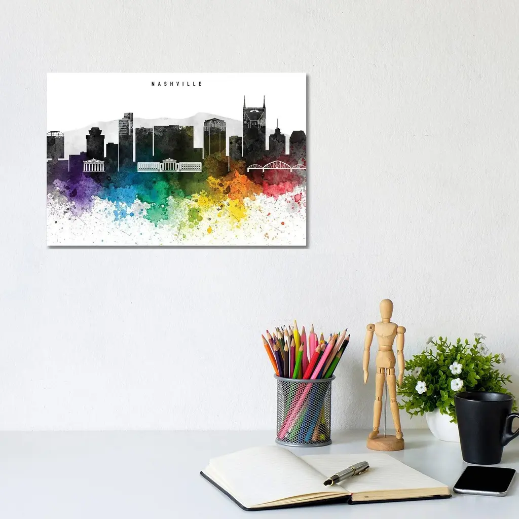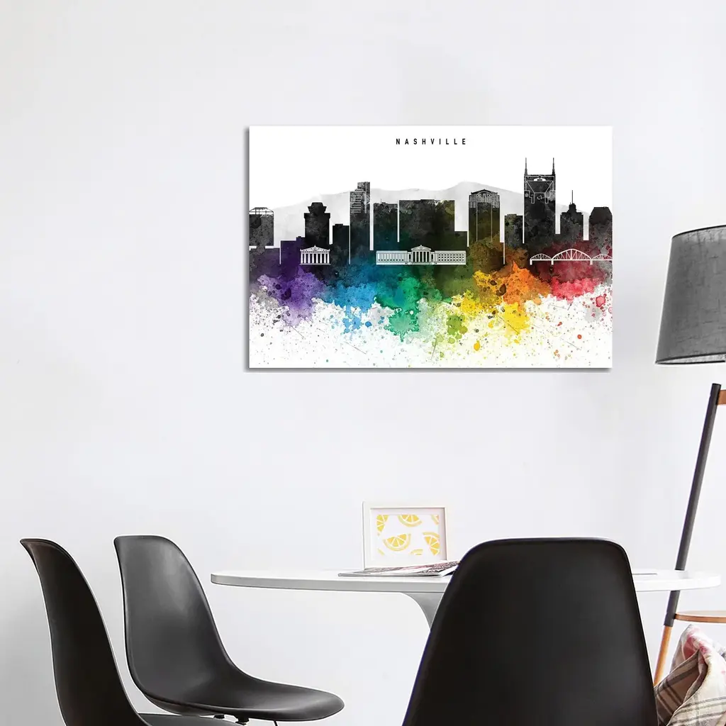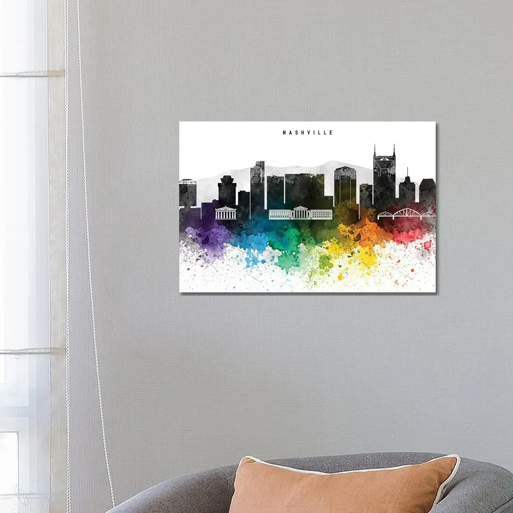 Icanvas "Nashville Skyline, Rainbow Style" By Walldecoraddict Canvas Print - 18x26x1.5