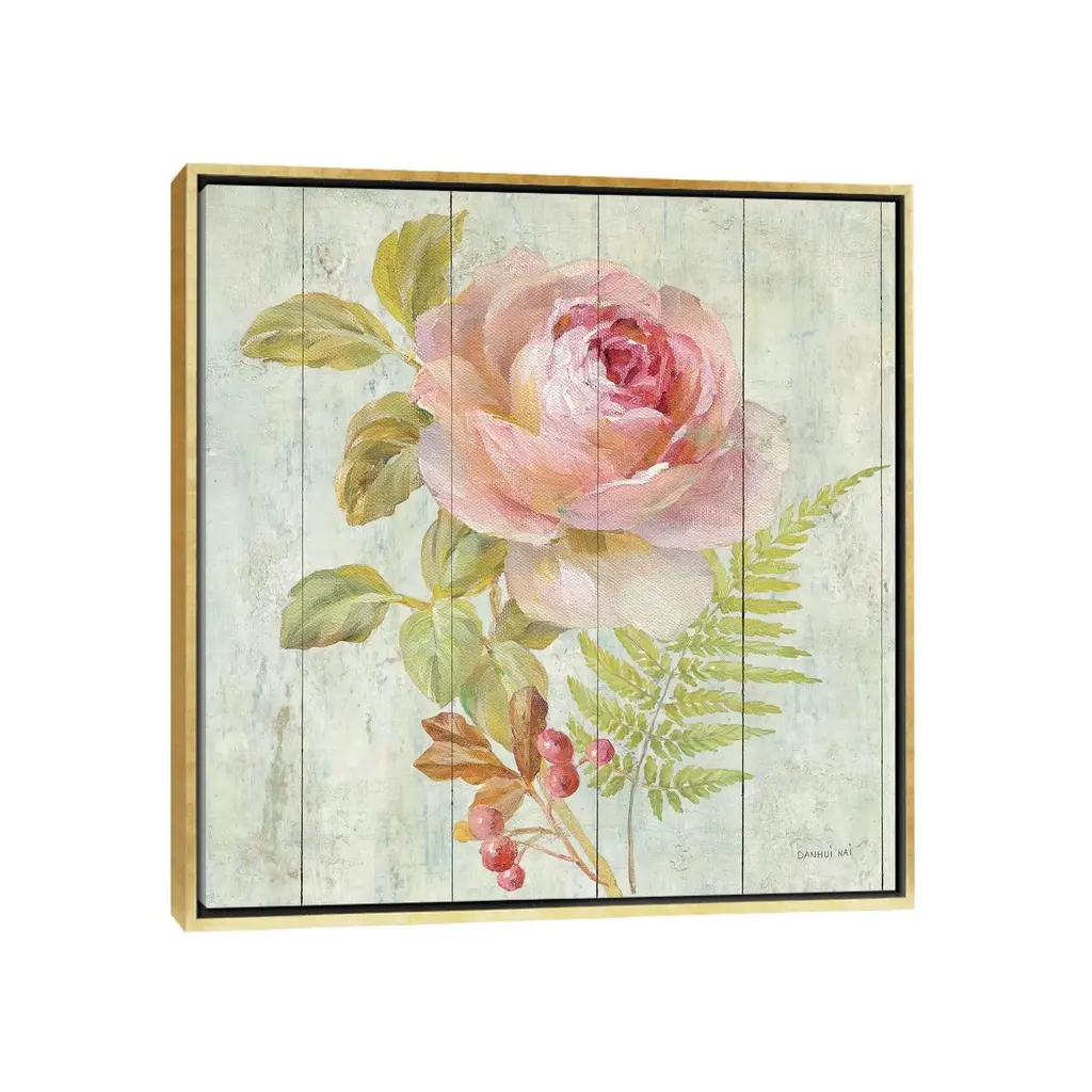 Icanvas "Natural Flora I" By Danhui Nai Framed - Gold - 26x26