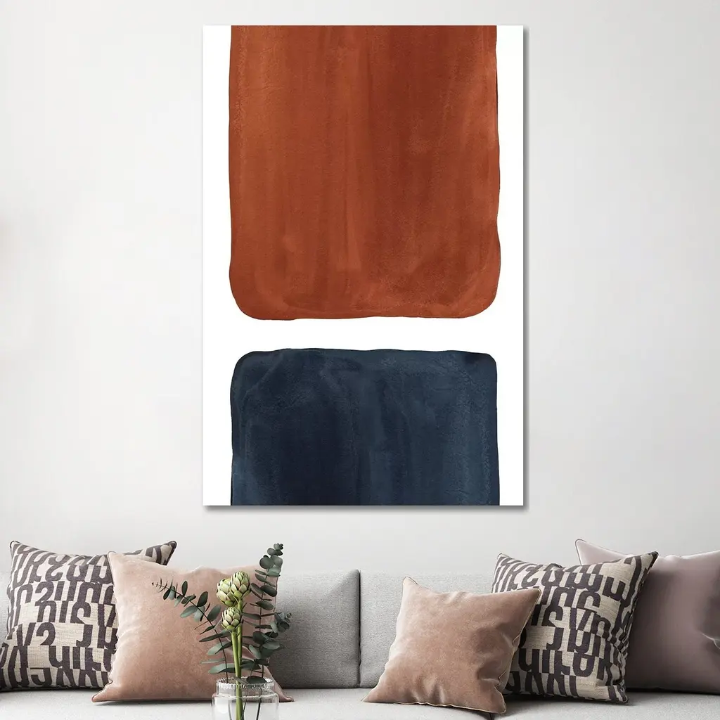 Icanvas "Navy Blue And Terracotta Geometric Watercolor" By Whales Way Canvas Print - 12x8x0.75