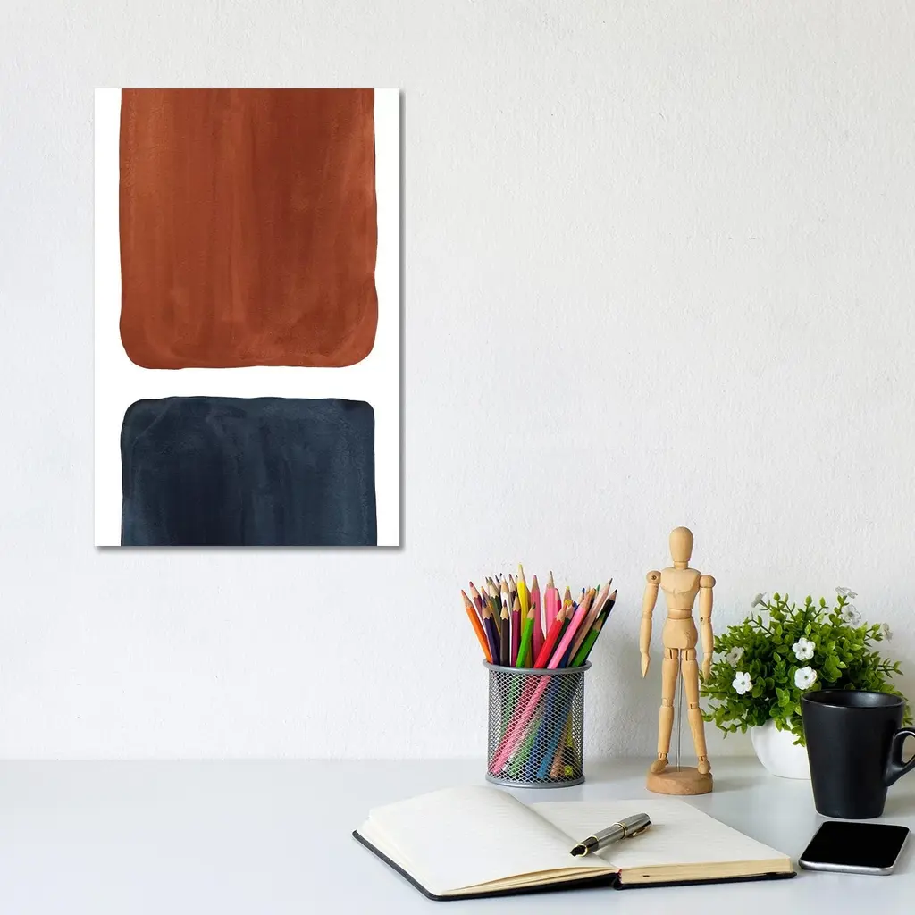 Icanvas "Navy Blue And Terracotta Geometric Watercolor" By Whales Way Canvas Print - 40x26x1.5