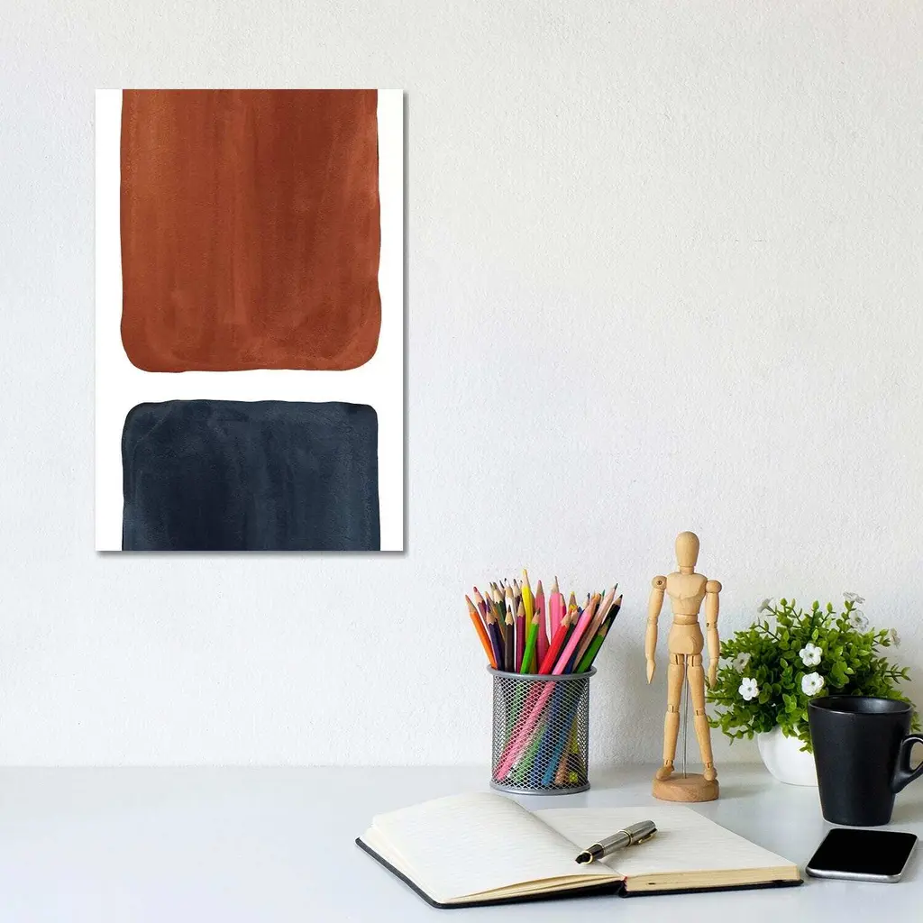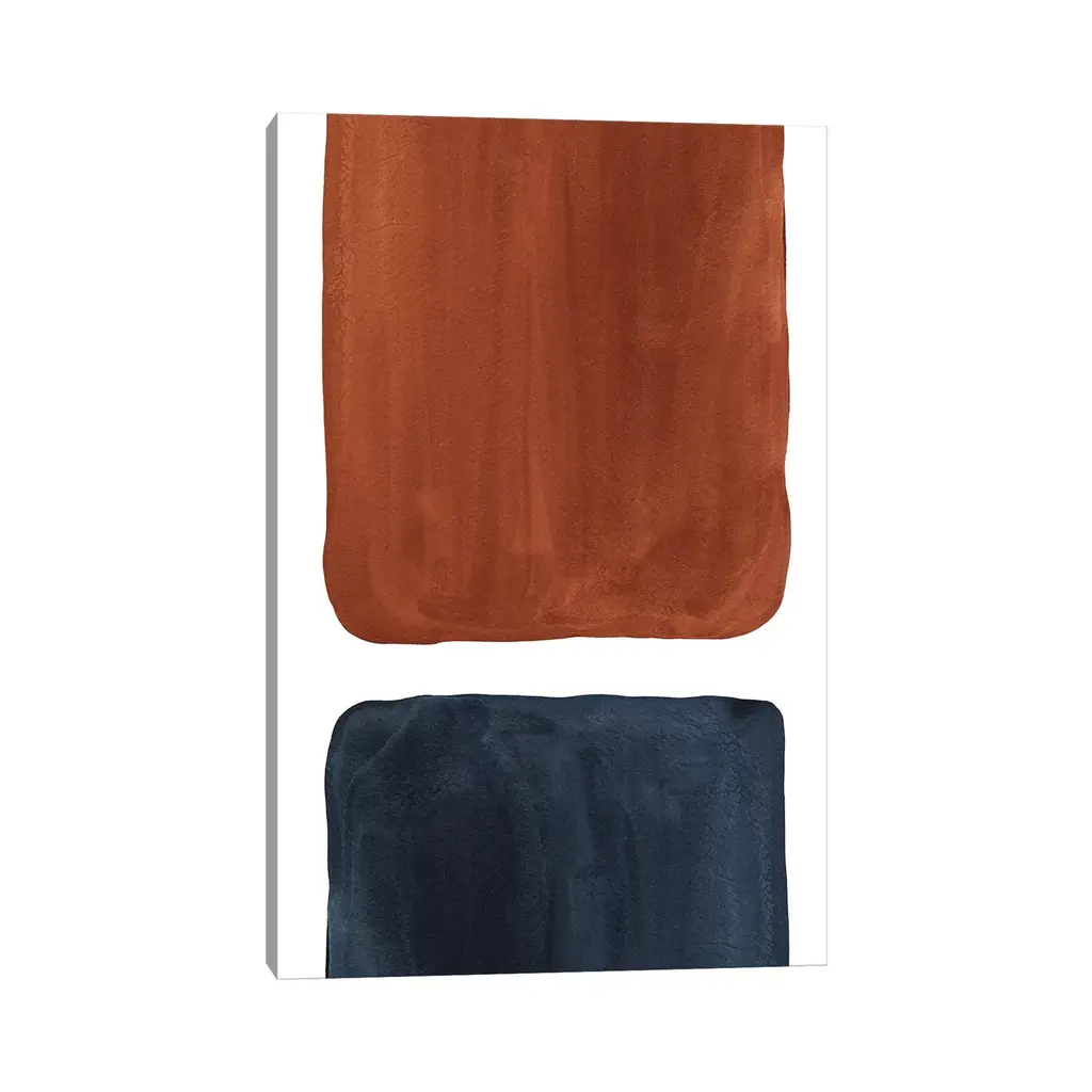 Icanvas "Navy Blue And Terracotta Geometric Watercolor" By Whales Way Canvas Print - 48x32x1.5