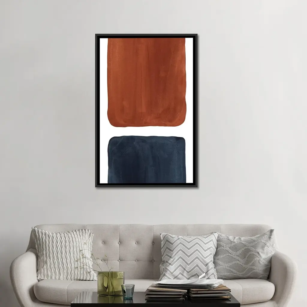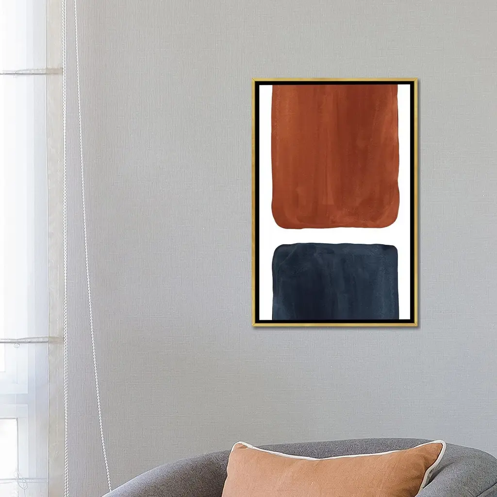 Icanvas "Navy Blue And Terracotta Geometric Watercolor" By Whales Way Framed Canvas Print - Gold - 26x18