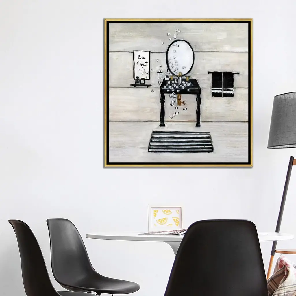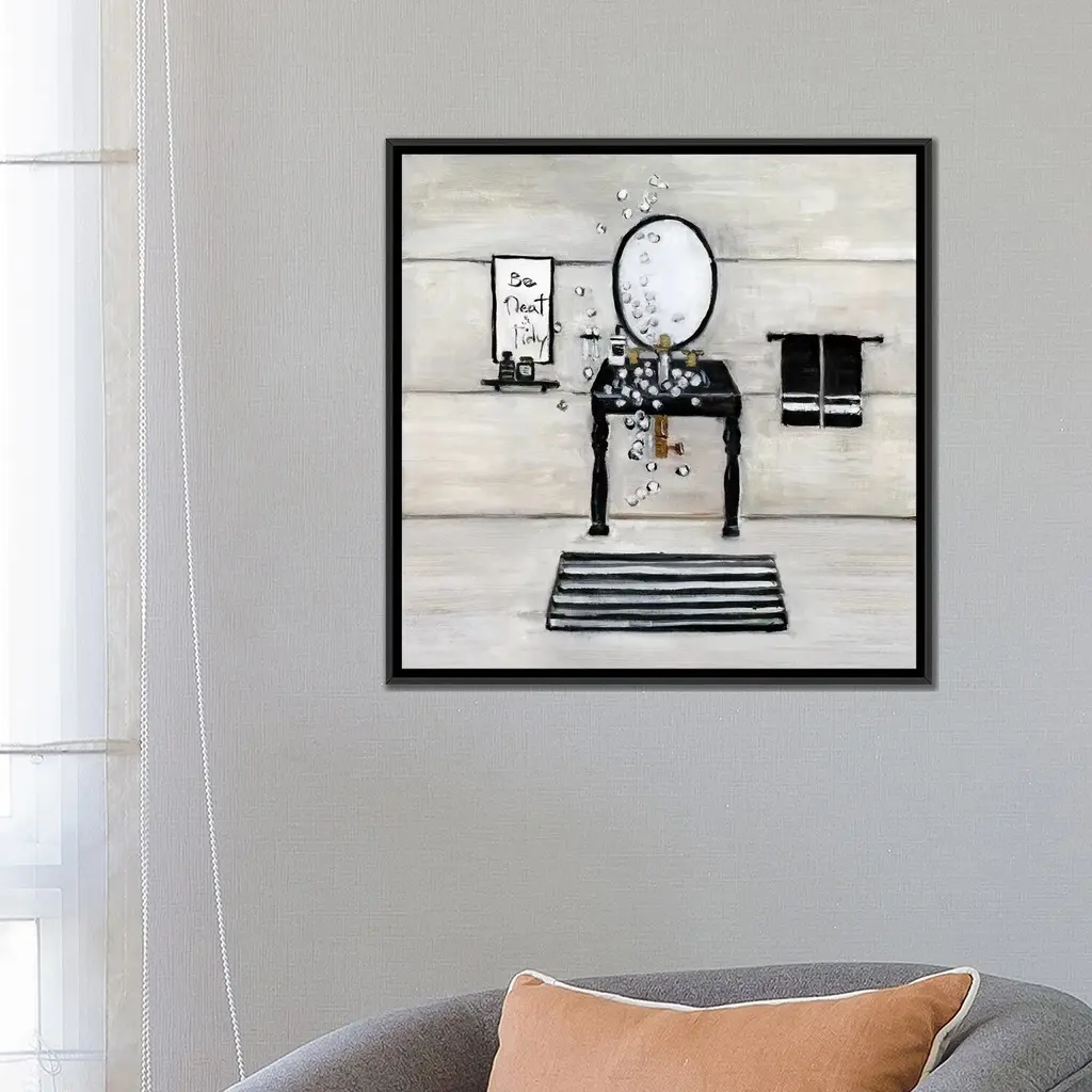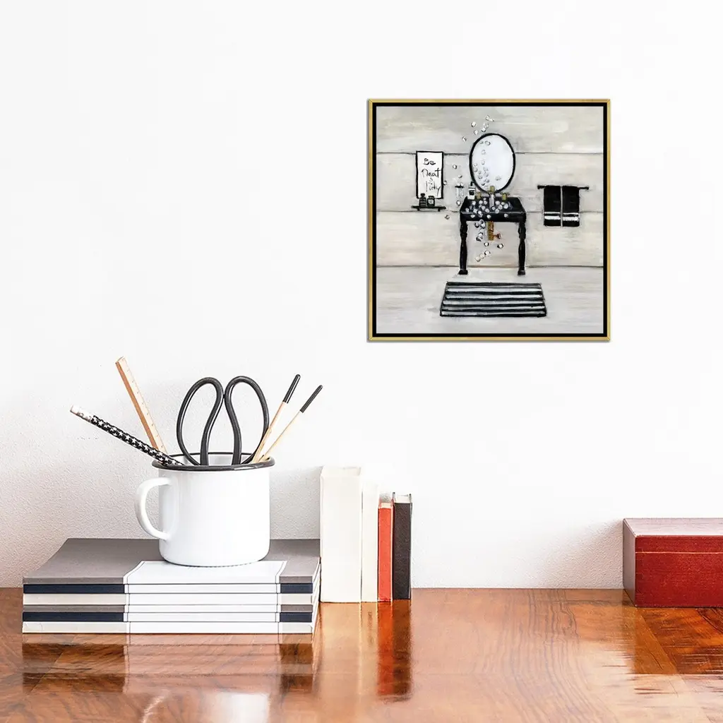 Icanvas "Neat And Tidy Bath" By Sally Swatland Framed - Gold - 12x12
