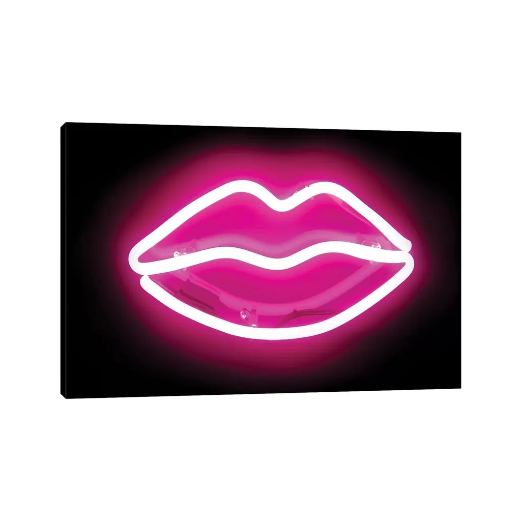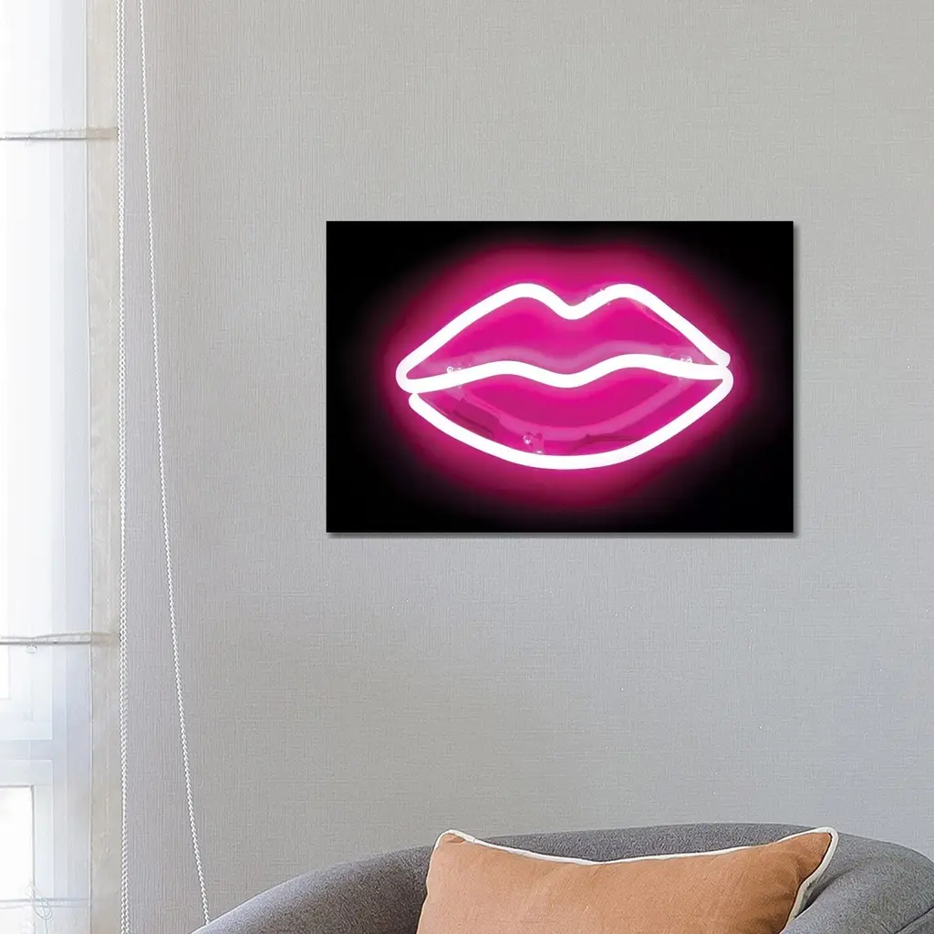 Icanvas "Neon Lips Pink On Black" By Hailey Carr Canvas Print - 18x26x1.5