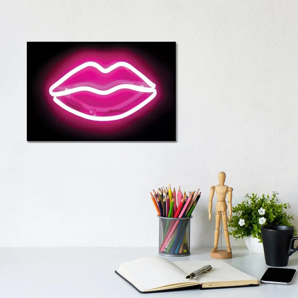 Icanvas "Neon Lips Pink On Black" By Hailey Carr Canvas Print - 8X12x0.75
