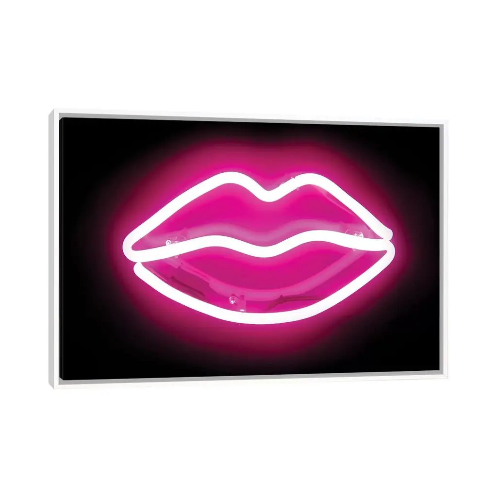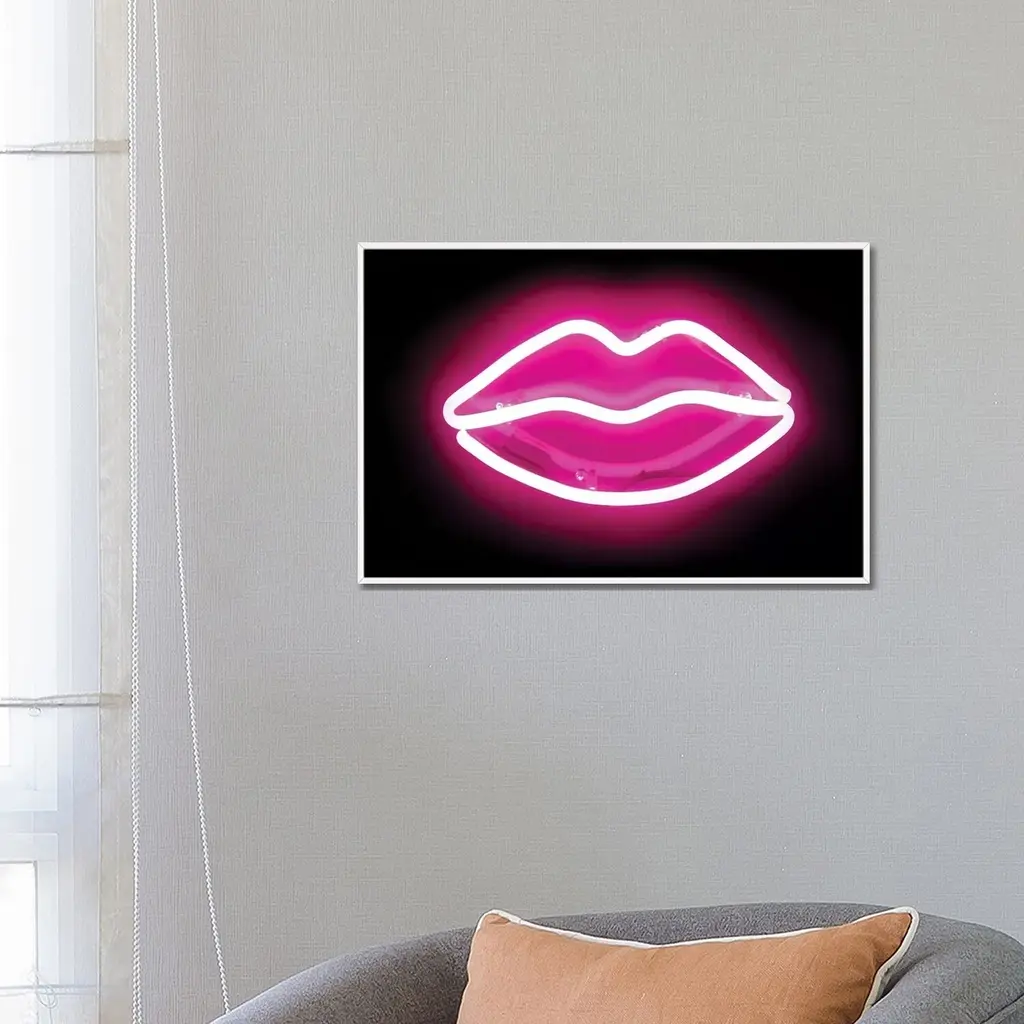 Icanvas "Neon Lips Pink On Black" By Hailey Carr Framed Canvas Print - Gold - 18x26